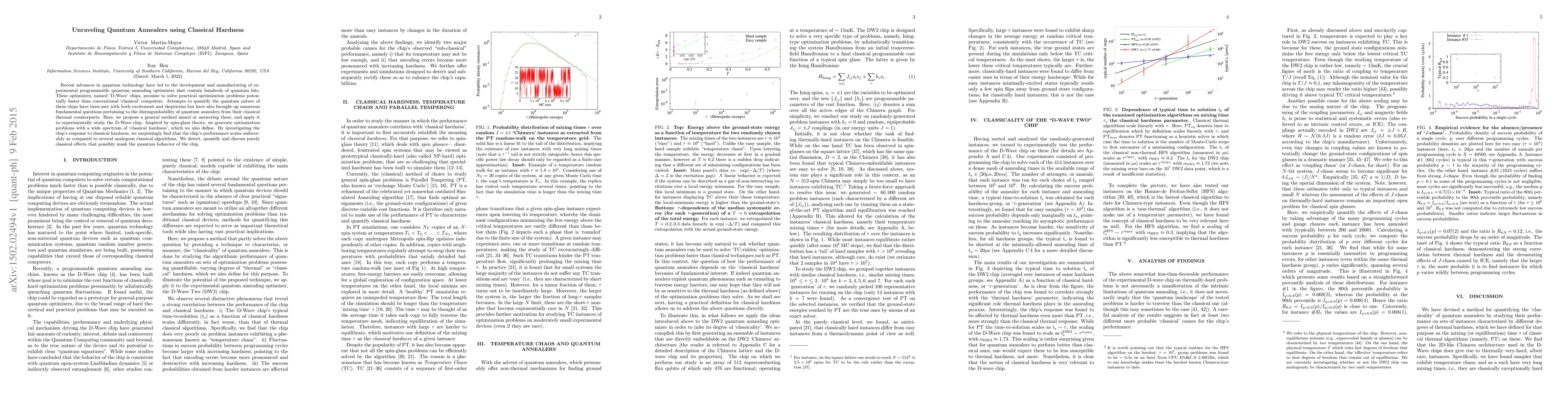 The paper introduces a method to quantify the 'classicality' of quantum annealers by studying their performance on problems with varying degrees of thermal hardness, defining a 'τ-generation' parameter to categorize problem instances.