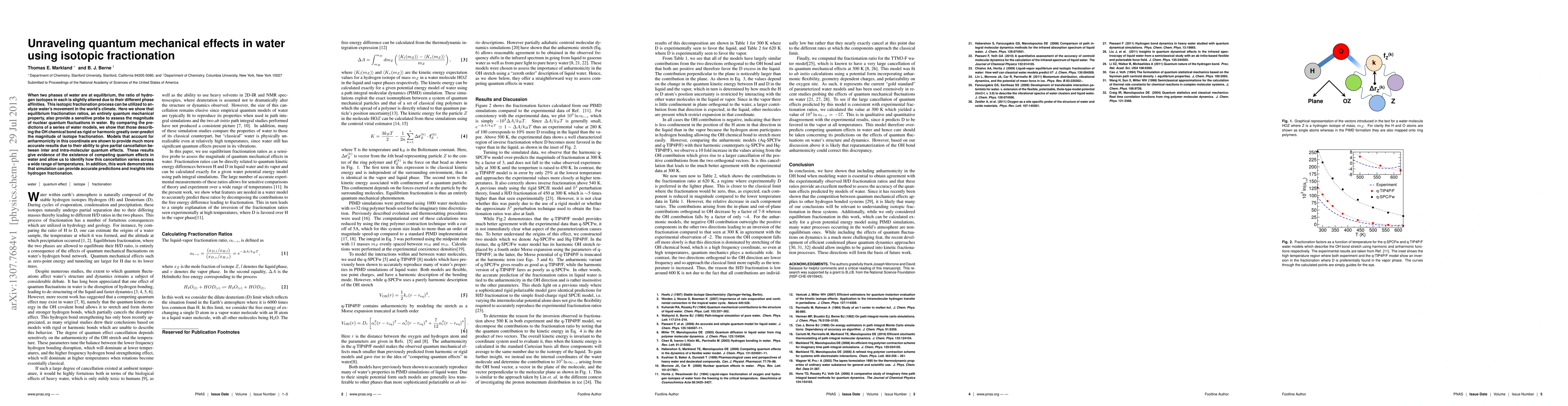 This paper investigates quantum mechanical effects in water through isotopic fractionation, revealing that anharmonic models better predict isotope ratios compared to rigid or harmonic models. It identifies competing quantum effects and demonstrates the potential of simulations to accurately assess hydrogen fractionation in water.