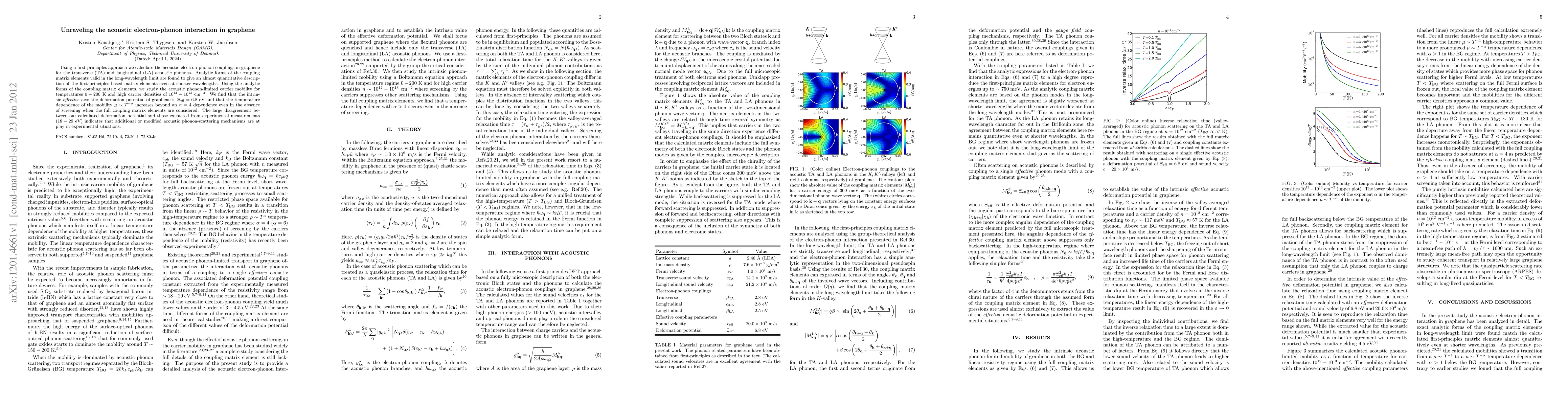 This study uses first-principles calculations to determine the acoustic electron-phonon couplings in graphene, revealing a significant effective deformation potential of 6.8 eV. It highlights discrepancies between calculated and experimental values, suggesting alternative phonon-scattering mechanisms in experiments.