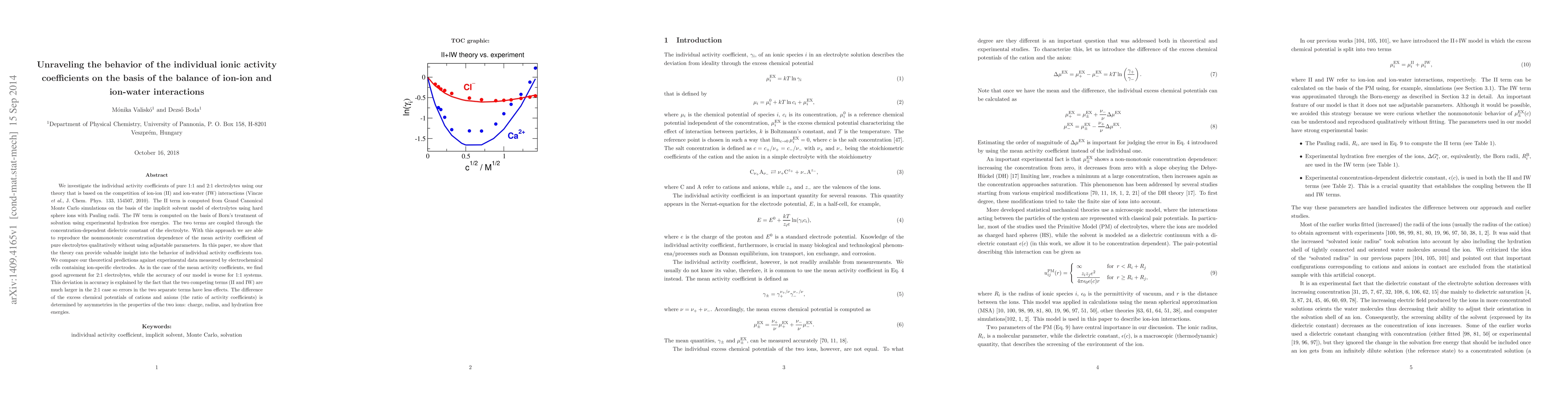 Researchers developed a theory to predict individual ionic activity coefficients in electrolytes, comparing well with experiments for 2:1 electrolytes but showing less accuracy for 1:1 systems.