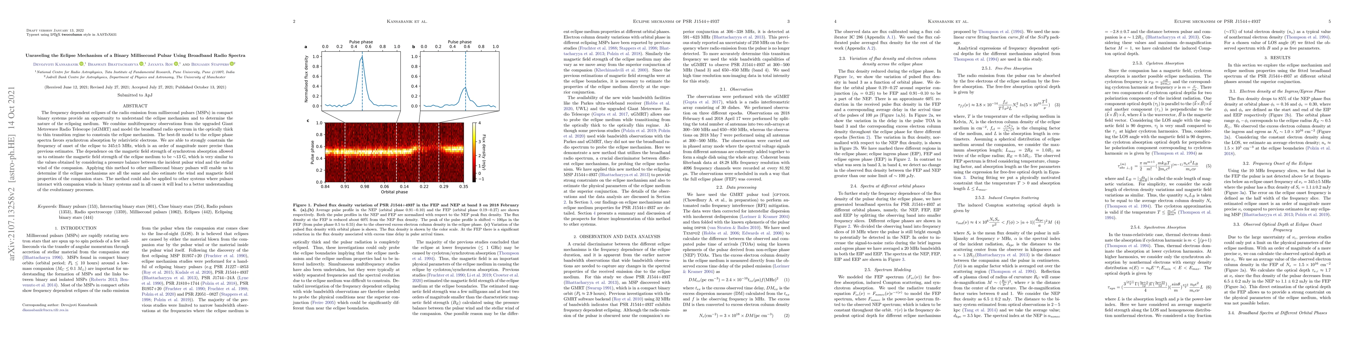 The frequency dependent eclipses of the radio emission from millisecond pulsars (MSPs) in compact binary systems provide an opportunity to understand the eclipse mechanism and to determine the nature of the eclipsing medium. We combine multifrequency observations from the upgraded Giant Metrewave Radio Telescope (uGMRT) and model the broadband radio spectrum in the optically thick to thin transition regime to constrain the eclipse mechanism. The best-fit model to the eclipse phase spectra favors synchrotron absorption by relativistic electrons. We are able to strongly constrain the frequency of onset of the eclipse to 345$\pm$5 $\mathrm{MHz}$, which is an order of magnitude more precise than previous estimates. The dependence on the magnetic field strength of synchrotron absorption allowed us to estimate the magnetic field strength of the eclipse medium to be $\sim$13 $\mathrm{G}$, which is very similar to the values obtained by considering a pressure balance between the incident pulsar wind and the stellar wind of the companion. Applying this method to other millisecond binary pulsars will enable us to determine if the eclipse mechanisms are all the same and also estimate the wind and magnetic field properties of the companion stars. The method could also be applied to other systems where pulsars interact with companion winds in binary systems and in all cases it will lead to a better understanding of the evolutionary processes.