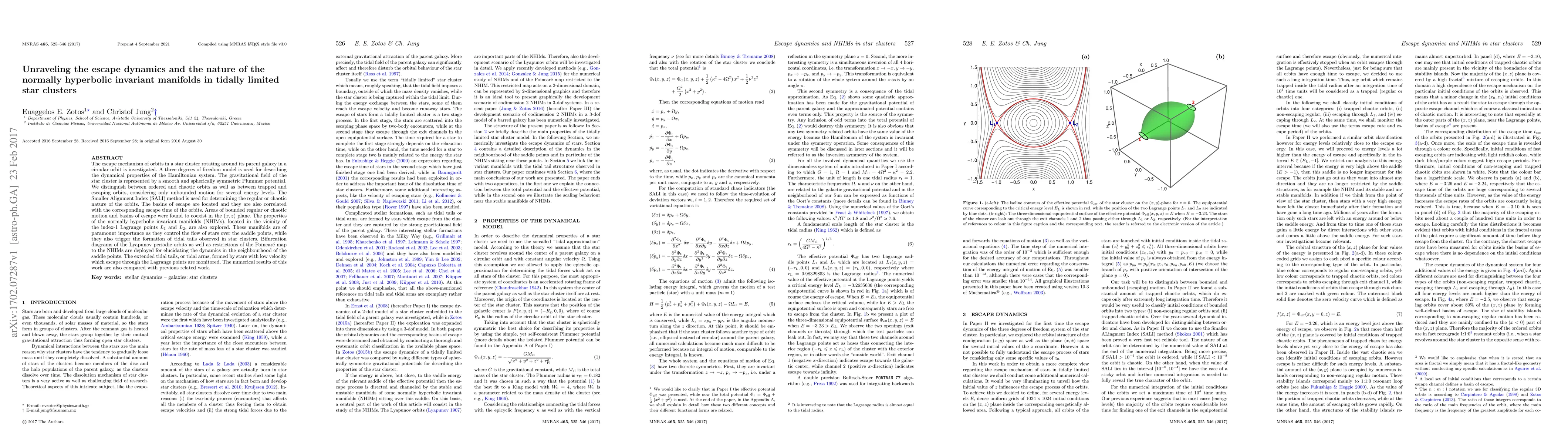 This paper investigates the escape dynamics of orbits in tidally limited star clusters using a three-degrees-of-freedom Hamiltonian model. The study identifies ordered and chaotic orbits, focusing on the normally hyperbolic invariant manifolds (NHIMs) near $L_1$ and $L_2$ Lagrange points, which influence the formation of tidal tails.