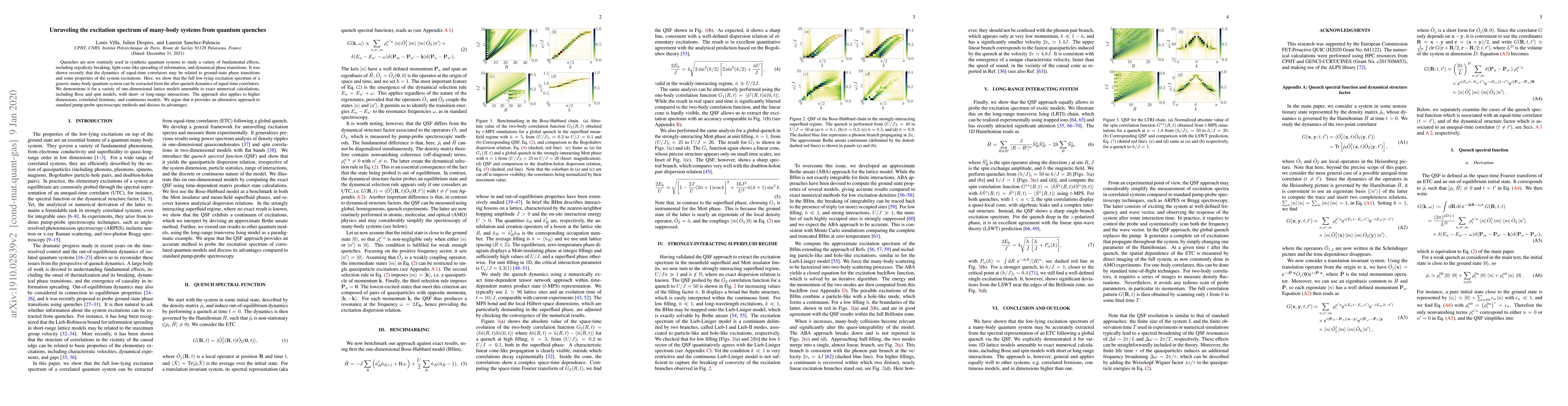Quenches are now routinely used in synthetic quantum systems to study a variety of fundamental effects, including ergodicity breaking, light-cone-like spreading of information, and dynamical phase transitions. It was shown recently that the dynamics of equal-time correlators may be related to ground-state phase transitions and some properties of the system excitations. Here, we show that the full low-lying excitation spectrum of a generic many-body quantum system can be extracted from the after-quench dynamics of equal-time correlators. We demonstrate it for a variety of one-dimensional lattice models amenable to exact numerical calculations, including Bose and spin models, with short- or long-range interactions. The approach also applies to higher dimensions, correlated fermions, and continuous models. We argue that it provides an alternative approach to standard pump-probe spectroscopic methods and discuss its advantages.