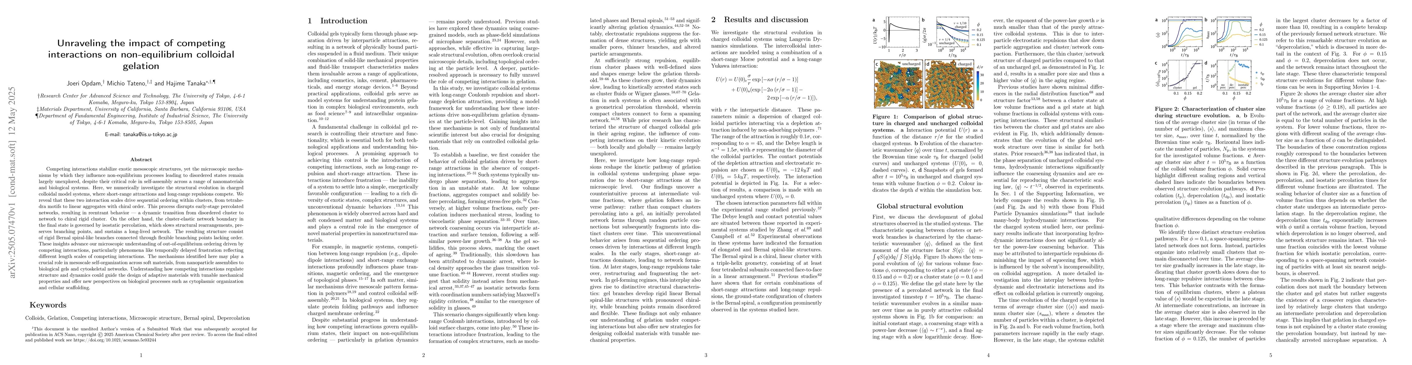 The paper presents a detailed analysis of how competing interactions influence non-equilibrium colloidal gelation, uncovering sequential ordering, reentrant behavior, and the role of isostatic percolation in the final structure.