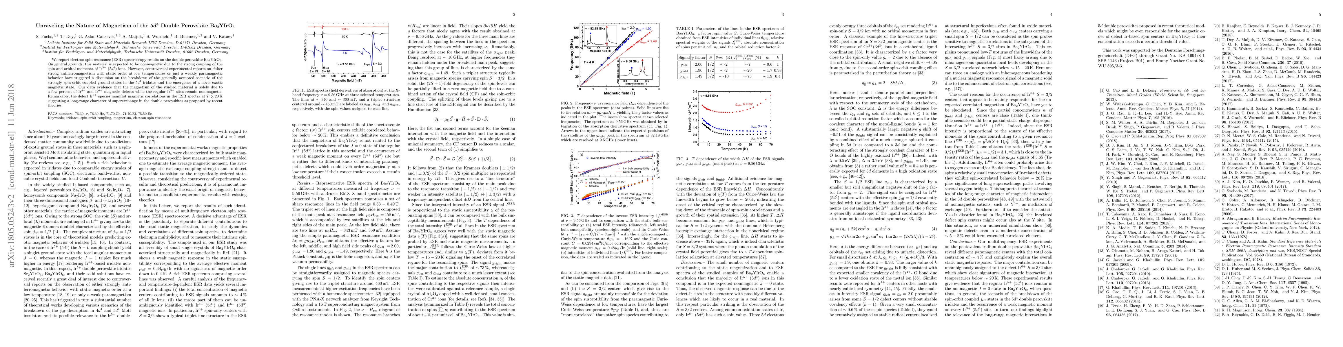 The research utilized electron spin resonance (ESR) spectroscopy on the double perovskite Ba$_2$YIrO$_6$ to investigate its magnetic properties.