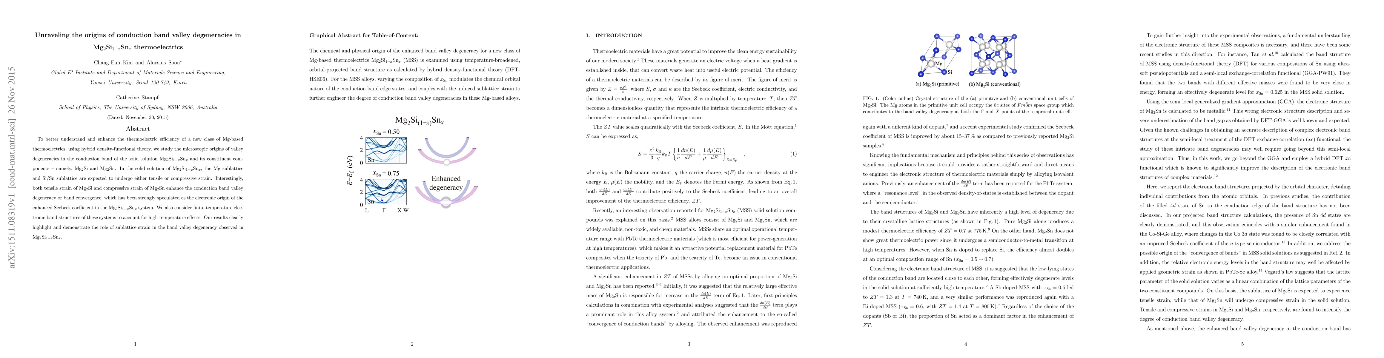 This study uses hybrid density-functional theory to investigate Mg2Si-1xSnx thermoelectrics. It finds that tensile strain in Mg2Si and compressive strain in Mg2Sn enhance conduction band valley degeneracy, contributing to the enhanced Seebeck coefficient in the solid solution. The research also considers high-temperature effects, highlighting strain's role in band valley degeneracy.