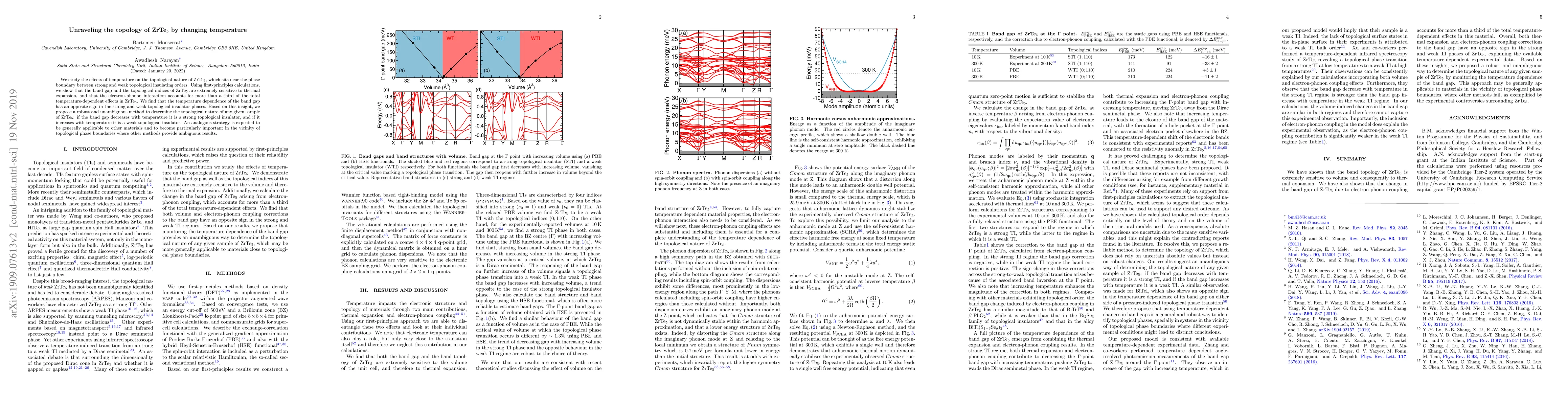 This study investigates the temperature-induced changes in the topological properties of ZrTe$_5$, revealing that thermal effects significantly alter its band gap and topological indices. The research proposes a method to distinguish between strong and weak topological insulating phases based on temperature-dependent band gap behavior.