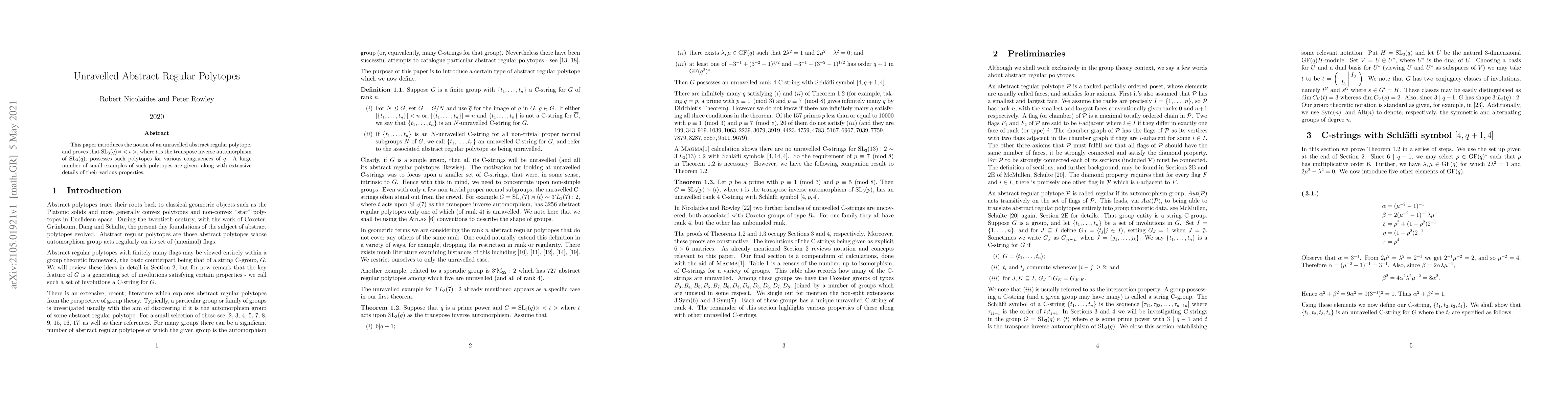 This paper defines unravelled abstract regular polytopes and demonstrates that $\SL_3(q) \rtimes <t>$ contains these polytopes for various values of $q$, with detailed examples and properties discussed.
