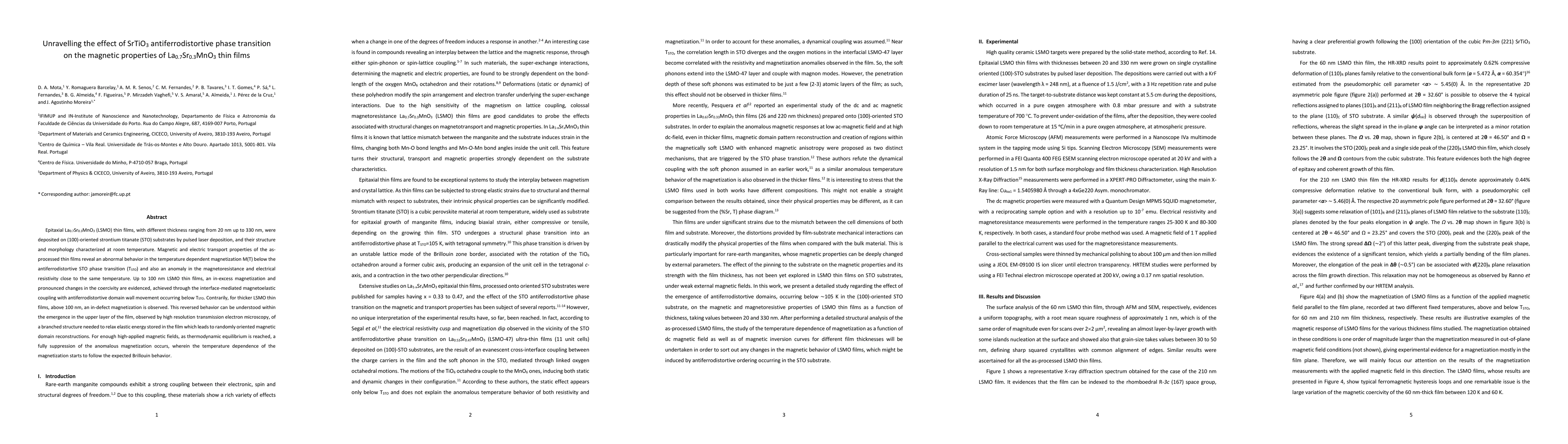This paper investigates the magnetic properties of La0.7Sr0.3MnO3 thin films on SrTiO3 substrates, revealing anomalous magnetization and resistivity changes below the antiferrodistortive phase transition of SrTiO3. The films exhibit distinct behaviors depending on thickness, with interface-mediated magnetoelastic coupling influencing magnetization in thinner films and branched structures causing domain reconstructions in thicker films.