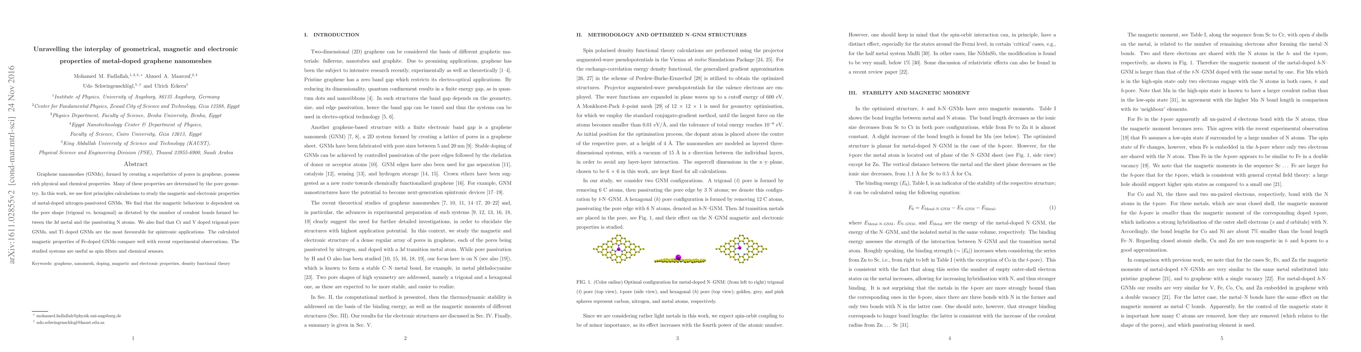 This research investigates the magnetic and electronic properties of metal-doped nitrogen-passivated graphene nanomeshes using first principles calculations. The study finds that magnetic behavior is influenced by pore shape and metal-nitrogen bond formation, with Cr, V, and Ti doped GNMs showing potential for spintronic applications.