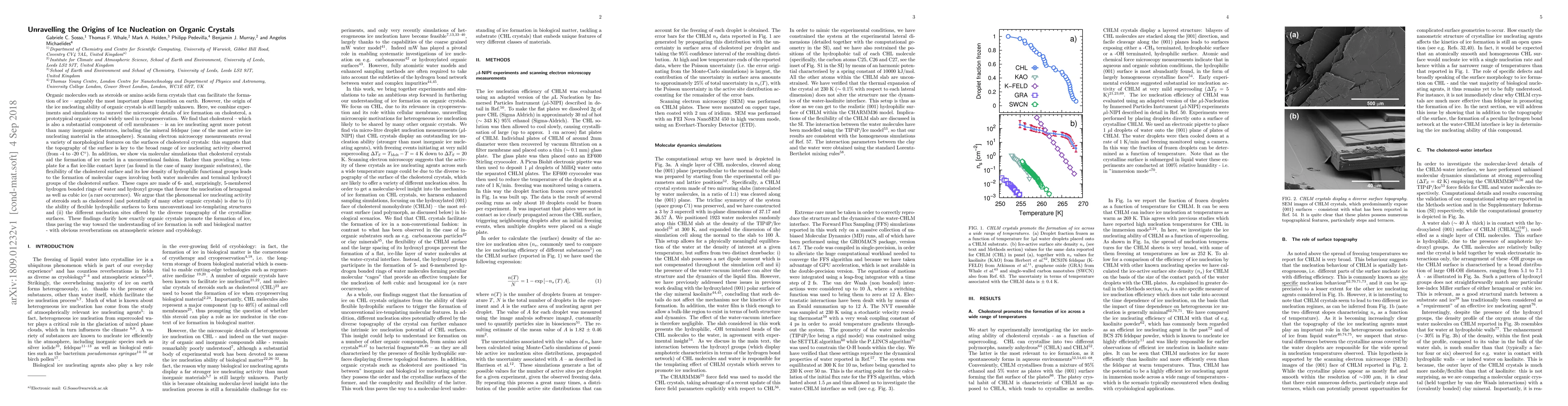 This research combines experiments and simulations to discover that cholesterol, a common organic crystal, is a potent ice nucleating agent. Its flexibility and low hydrophilic groups enable the formation of unique molecular cages, facilitating ice nucleation across a wide temperature range, potentially explaining the activity of other organic crystals too.