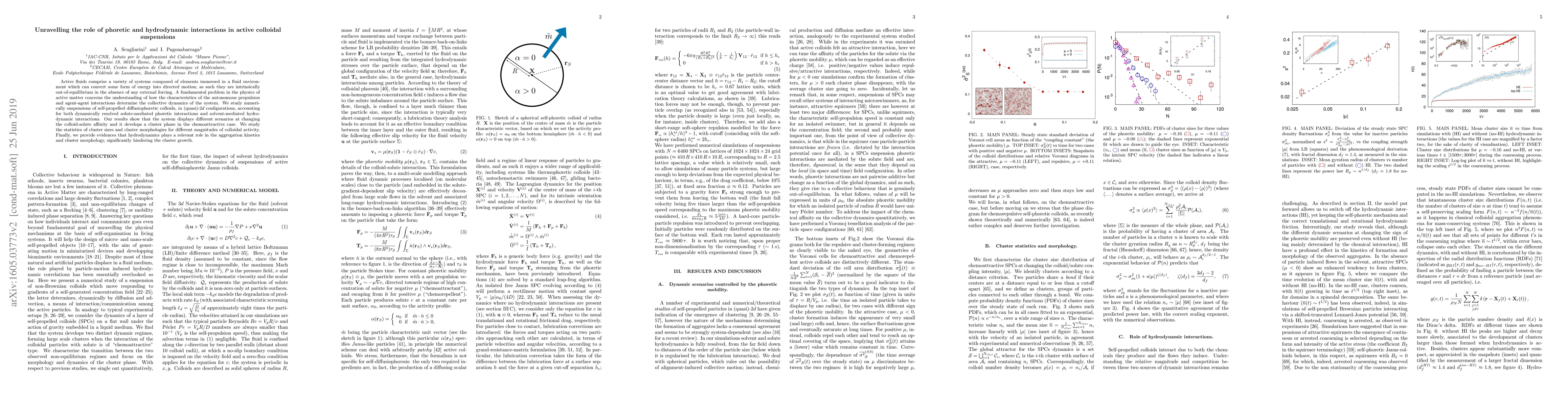 Active fluids comprise a variety of systems composed of elements immersed in a fluid environment which can convert some form of energy into directed motion; as such they are intrinsically out-of-equilibrium in the absence of any external forcing. A fundamental problem in the physics of active matter concerns the understanding of how the characteristics of the autonomous propulsion and agent-agent interactions determine the collective dynamics of the system. We study numerically suspensions of self-propelled diffusiophoretic colloids, in (quasi)-2d configurations, accounting for both dynamically resolved solute-mediated phoretic interactions and solvent-mediated hydrodynamic interactions. Our results show that the system displays different scenarios at changing the colloid-solute affinity and it develops a cluster phase in the chemoattractive case. We study the statistics of cluster sizes and cluster morphologies for different magnitudes of colloidal activity. Finally, we provide evidences that hydrodynamics plays a relevant role in the aggregation kinetics and cluster morphology, significantly hindering the cluster growth.