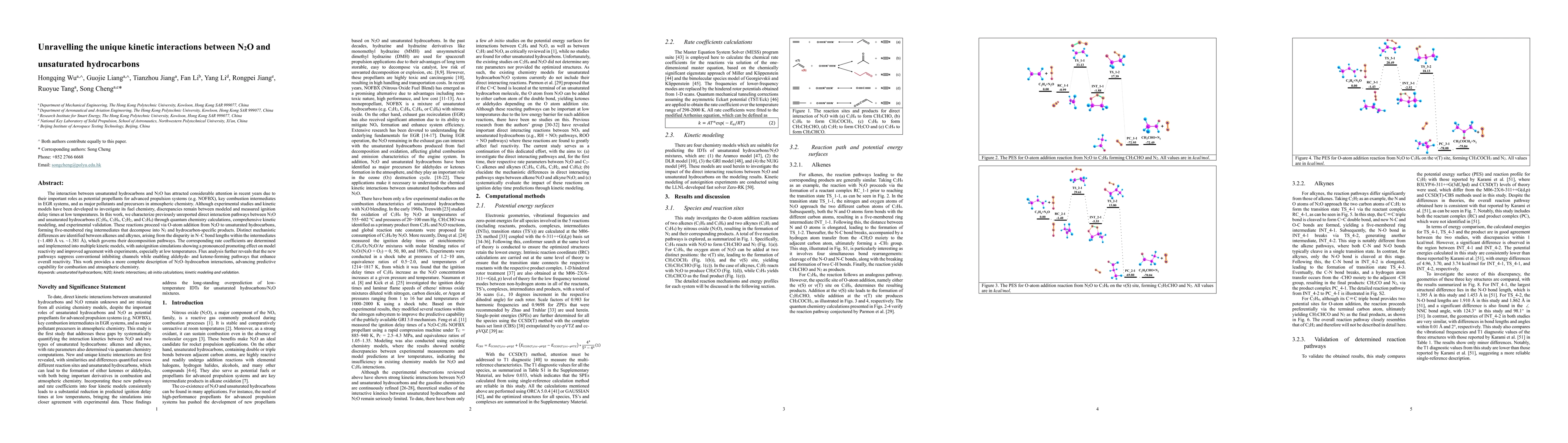 The interaction between unsaturated hydrocarbons and N2O has attracted considerable attention in recent years due to their important roles as potential propellants for advanced propulsion systems e.g. NOFBX, key combustion intermediates in EGR systems, and as major pollutants and precursors in atmospheric chemistry. Although experimental studies and kinetic models have been developed to investigate its fuel chemistry, discrepancies remain between modeled and measured ignition delay times at low temperatures. In this work, we characterize previously unreported direct interaction pathways between N2O and unsaturated hydrocarbons C2H4, C3H6, C2H2, and C3H4 through quantum chemistry calculations, comprehensive kinetic modeling, and experimental validation. These reactions proceed via O-atom addition from N2O to unsaturated hydrocarbons, forming five membered ring intermediates that decompose into N2 and hydrocarbon specific products. Distinct mechanistic differences are identified between alkenes and alkynes, arising from the disparity in N C bond lengths within the intermediates 1.480 A vs. 1.381 A, which governs their decomposition pathways. The corresponding rate coefficients are determined and implemented into multiple kinetic models, with autoignition simulations showing a pronounced promoting effect on model reactivity and improved agreement with experiments, especially at low temperatures. Flux analysis further reveals that the new pathways suppress conventional inhibiting channels while enabling aldehyde and ketone forming pathways that enhance overall reactivity. This work provides a more complete description of N2O hydrocarbon interactions, advancing predictive capability for combustion and atmospheric chemistry.
