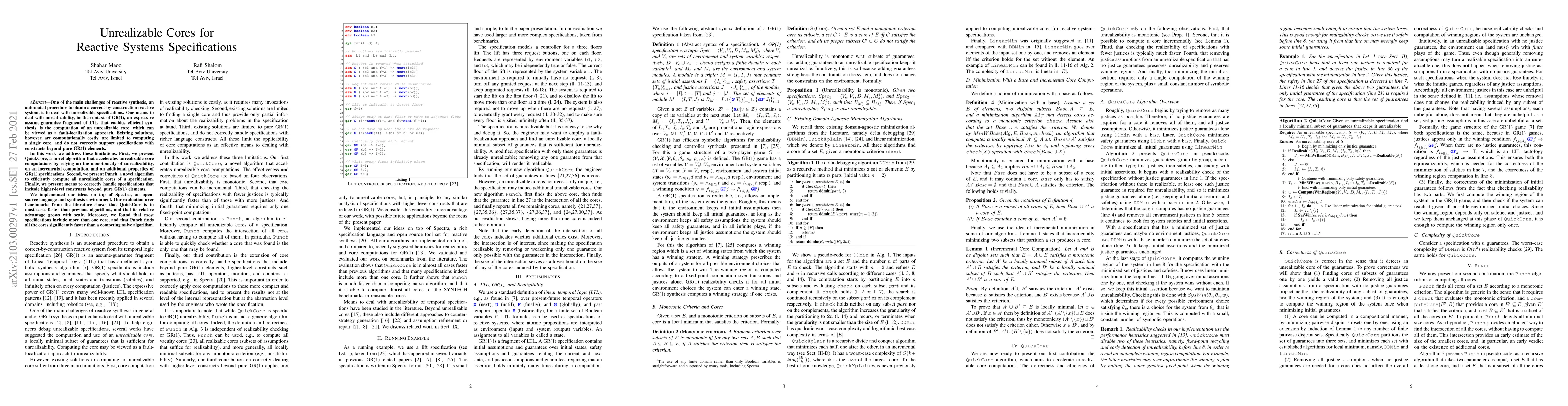The paper presents QuickCore, an algorithm for accelerating unrealizable core computations, and Punch, an algorithm for efficiently computing all unrealizable cores, along with methods to handle specifications with constructs beyond pure GR(1).