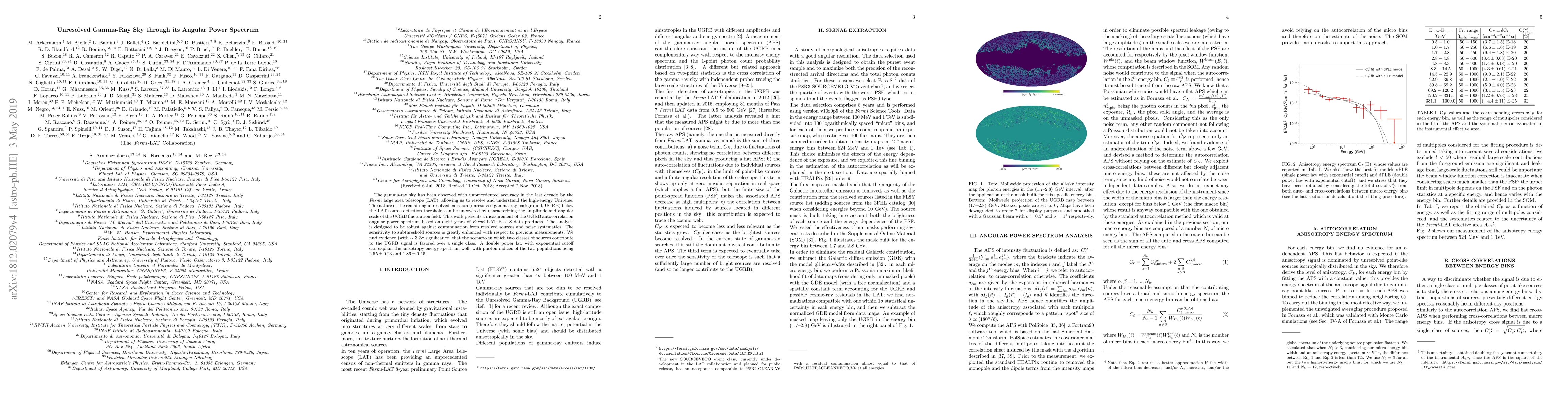 Researchers used 8 years of Fermi LAT data to study the unresolved gamma-ray sky, finding evidence for two types of sources contributing to the background signal and proposing a double power law model with exponential cutoffs.