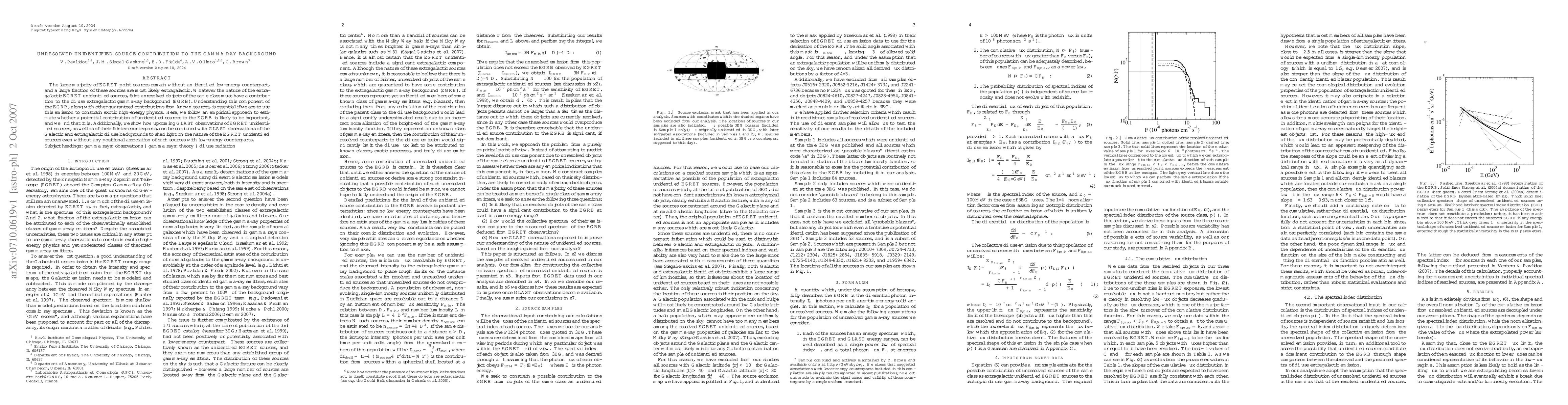 This paper estimates the contribution of unresolved unidentified gamma-ray sources to the extragalactic gamma-ray background (EGRB), finding it significant. It suggests that future GLAST observations can help identify the nature of these sources without requiring low-energy counterparts.