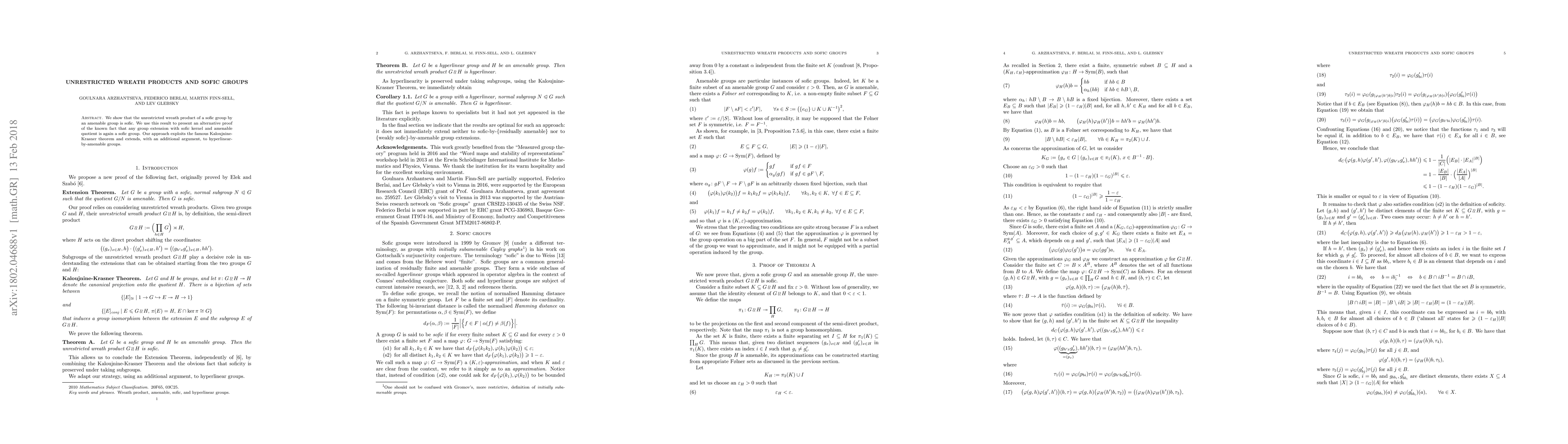 This paper demonstrates that the unrestricted wreath product of a sofic group with an amenable group remains sofic. It also provides an alternative proof for the soficity of group extensions with sofic kernels and amenable quotients, utilizing the Kaloujnine-Krasner theorem and extending the result to hyperlinear-by-amenable groups.