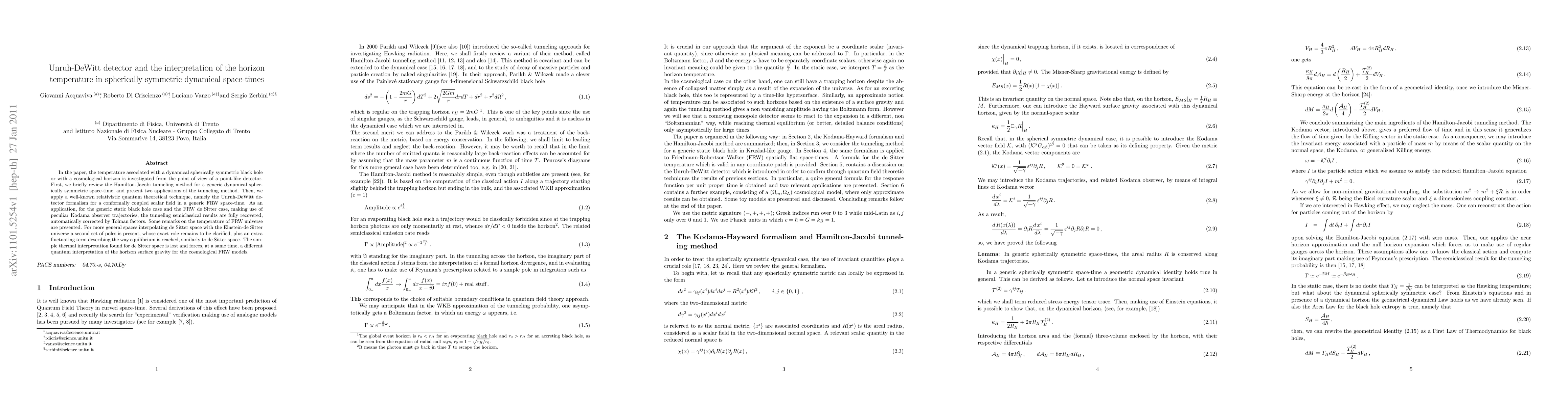This paper investigates the temperature of dynamical spherically symmetric black holes and cosmological horizons using the Unruh-DeWitt detector formalism. It applies the Hamilton-Jacobi tunneling method and recovers tunneling semiclassical results, revealing complexities in the interpretation of horizon temperature in general FRW models compared to de Sitter space.