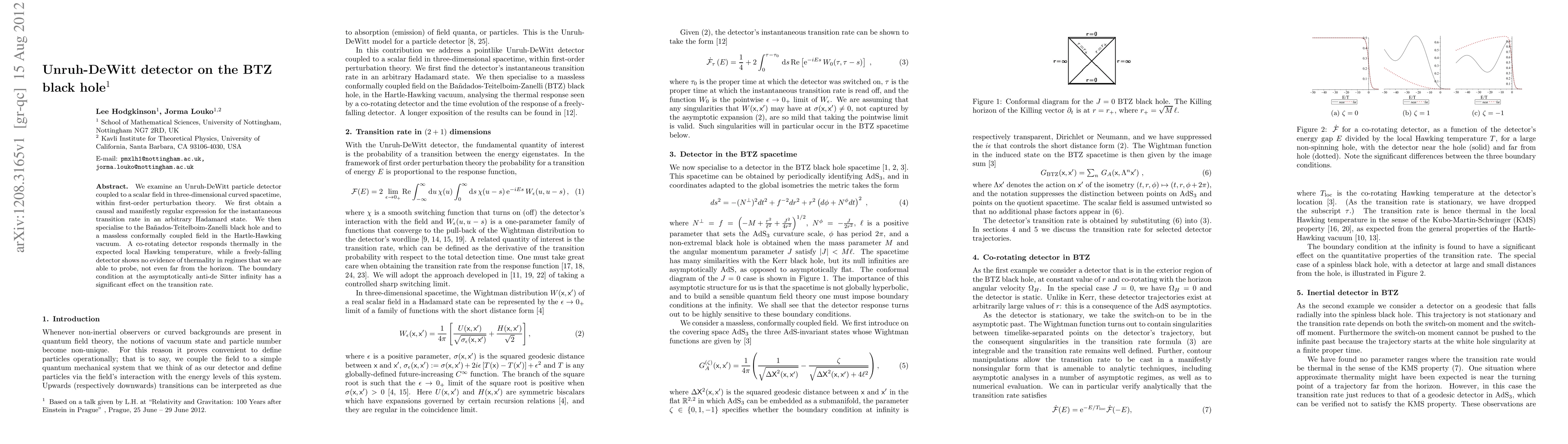 We examine an Unruh-DeWitt particle detector coupled to a scalar field in three-dimensional curved spacetime, within first-order perturbation theory. We first obtain a causal and manifestly regular expression for the instantaneous transition rate in an arbitrary Hadamard state. We then specialise to the Ba\~nados-Teitelboim-Zanelli black hole and to a massless conformally coupled field in the Hartle-Hawking vacuum. A co-rotating detector responds thermally in the expected local Hawking temperature, while a freely-falling detector shows no evidence of thermality in regimes that we are able to probe, not even far from the horizon. The boundary condition at the asymptotically anti-de Sitter infinity has a significant effect on the transition rate.