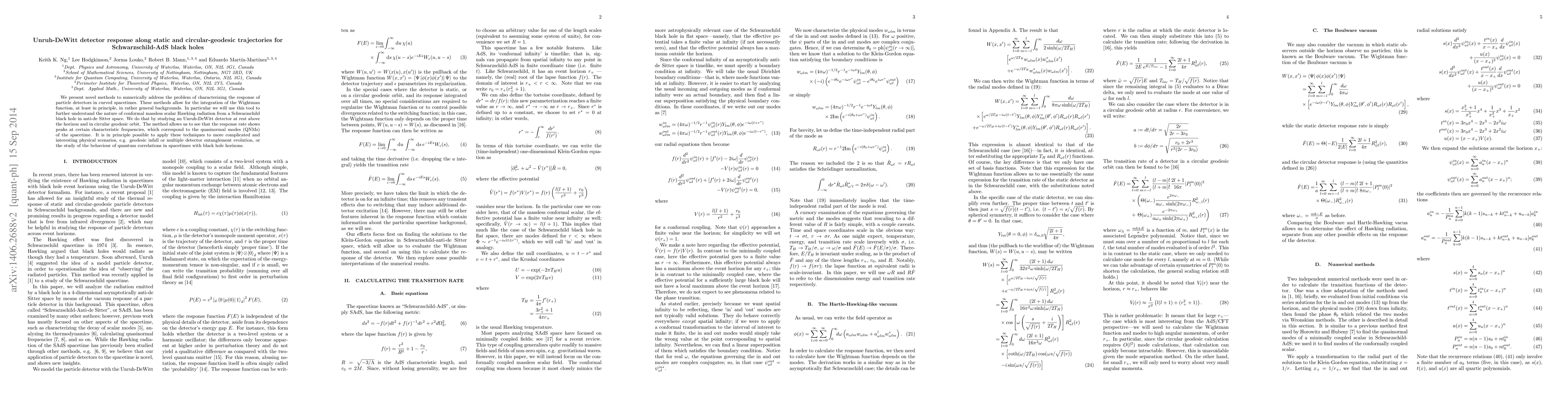 We present novel methods to numerically address the problem of characterizing the response of particle detectors in curved spacetimes. These methods allow for the integration of the Wightman function, at least in principle, in rather general backgrounds. In particular we will use this tool to further understand the nature of conformal massless scalar Hawking radiation from a Schwarzschild black hole in anti-de Sitter space. We do that by studying an Unruh-DeWitt detector at rest above the horizon and in circular geodesic orbit. The method allows us to see that the response rate shows peaks at certain characteristic frequencies, which correspond to the quasinormal modes (QNMs) of the space-time. It is in principle possible to apply these techniques to more complicated and interesting physical scenarios, e.g. geodesic infall or multiple detector entanglement evolution, or the study of the behaviour of quantum correlations in spacetimes with black hole horizons.