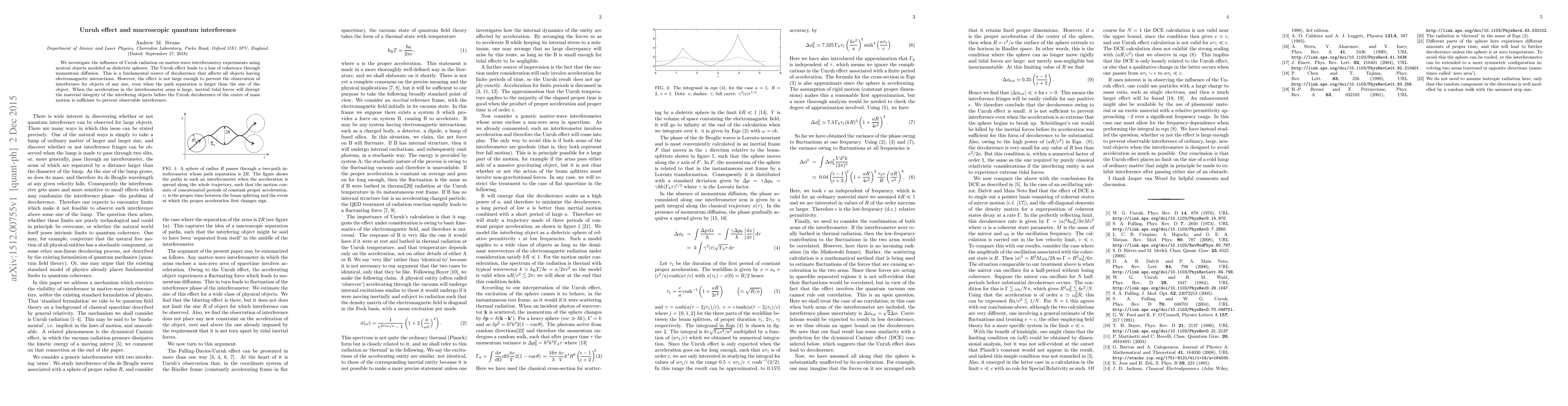 We investigate the influence of Unruh radiation on matter-wave interferometry experiments using neutral objects modeled as dielectric spheres. The Unruh effect leads to a loss of coherence through momentum diffusion. This is a fundamental source of decoherence that affects all objects having electromagnetic interactions. However, the effect is not large enough to prevent the observation of interference for objects of any size, even when the path separation is larger than the size of the object. When the acceleration in the interferometer arms is large, inertial tidal forces will disrupt the material integrity of the interfering objects before the Unruh decoherence of the centre of mass motion is sufficient to prevent observable interference.