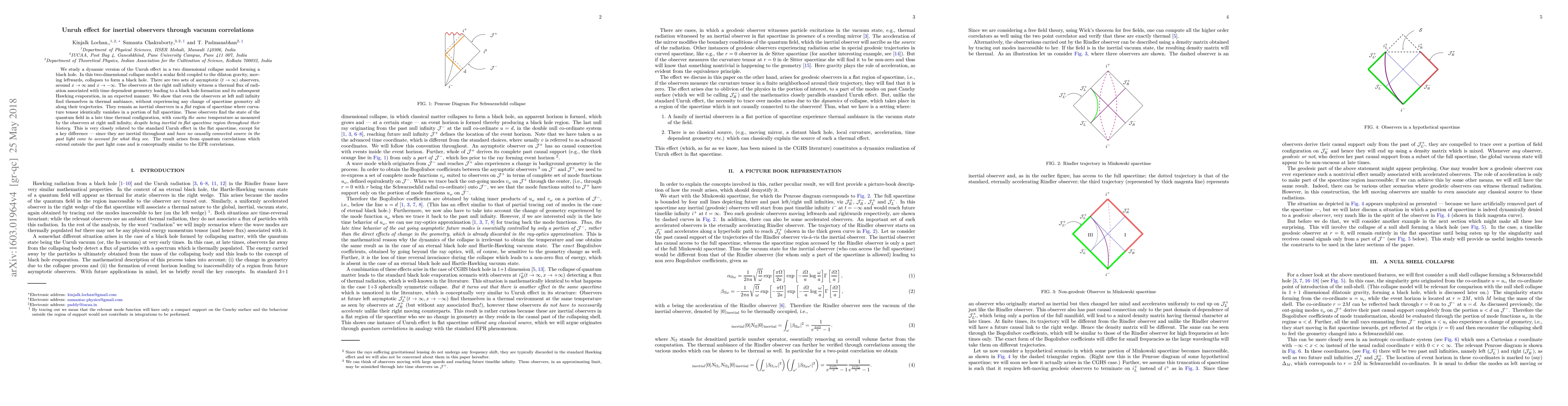 We study a dynamic version of the Unruh effect in a two dimensional collapse model forming a black hole. In this two-dimensional collapse model a scalar field coupled to the dilaton gravity, moving leftwards, collapses to form a black hole. There are two sets of asymptotic ($t\to\infty$) observers, around $x\to\infty$ and $x\to-\infty$. The observers at the right null infinity witness a thermal flux of radiation associated with time dependent geometry leading to a black hole formation and its subsequent Hawking evaporation, in an expected manner. We show that even the observers at left null infinity find themselves in thermal ambiance, without experiencing any change of spacetime geometry all along their trajectories. They remain as inertial observers in a \emph{flat} region of spacetime where curvature tensor identically vanishes in a portion of full spacetime. These observers find the state of the quantum field in a late time thermal configuration, with \emph{exactly the same} temperature as measured by the observers at right null infinity, {\it despite being inertial in flat spacetime region throughout their history}. This is very closely related to the standard Unruh effect in the flat spacetime, except for a key difference --- since they are inertial throughout and {\it have no causally connected source in the past light cone to account for what they see}. The result arises from quantum correlations which extend outside the past light cone and is conceptually similar to the EPR correlations.
