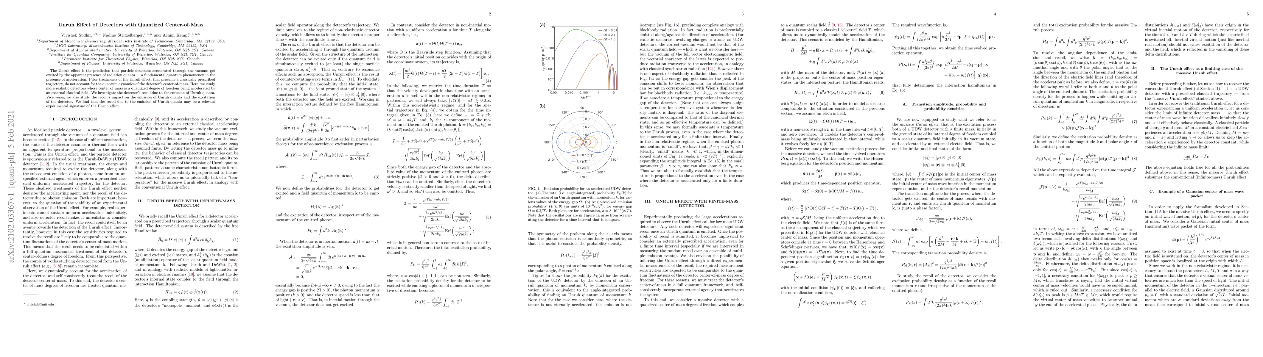 This paper investigates the Unruh effect for detectors with quantized center-of-mass, showing that the detector's recoil from emitting Unruh radiation quanta can influence the effect's manifestation. The study suggests that this recoil may serve as an important experimental signature of the Unruh effect.