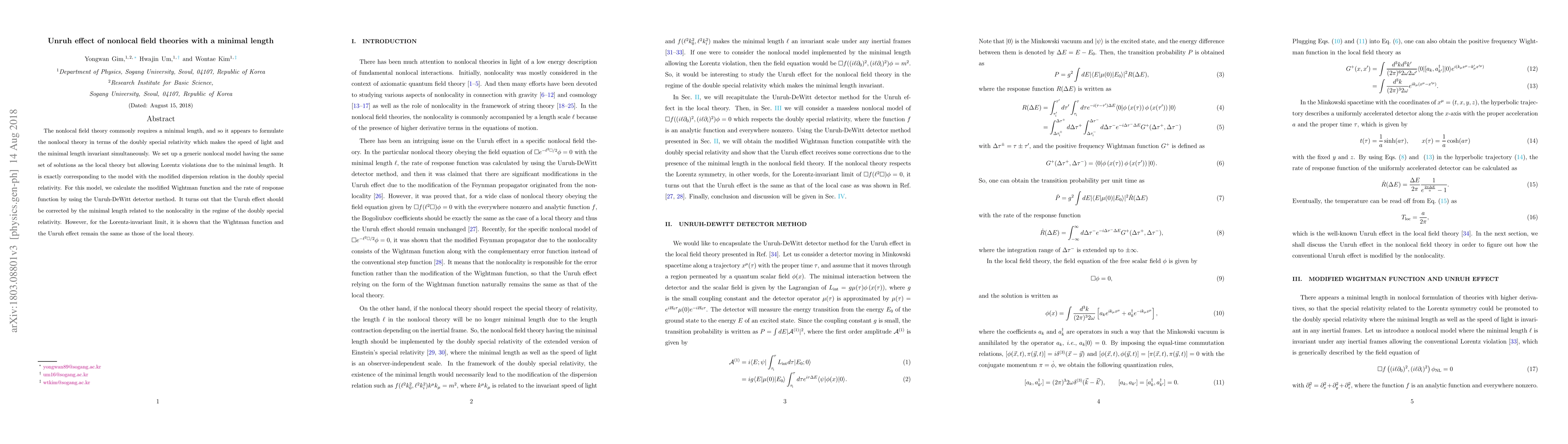 The nonlocal field theory commonly requires a minimal length, and so it appears to formulate the nonlocal theory in terms of the doubly special relativity which makes the speed of light and the minimal length invariant simultaneously. We set up a generic nonlocal model having the same set of solutions as the local theory but allowing Lorentz violations due to the minimal length. It is exactly corresponding to the model with the modified dispersion relation in the doubly special relativity. For this model, we calculate the modified Wightman function and the rate of response function by using the Unruh-DeWitt detector method. It turns out that the Unruh effect should be corrected by the minimal length related to the nonlocality in the regime of the doubly special relativity. However, for the Lorentz-invariant limit, it is shown that the Wightman function and the Unruh effect remain the same as those of the local theory.