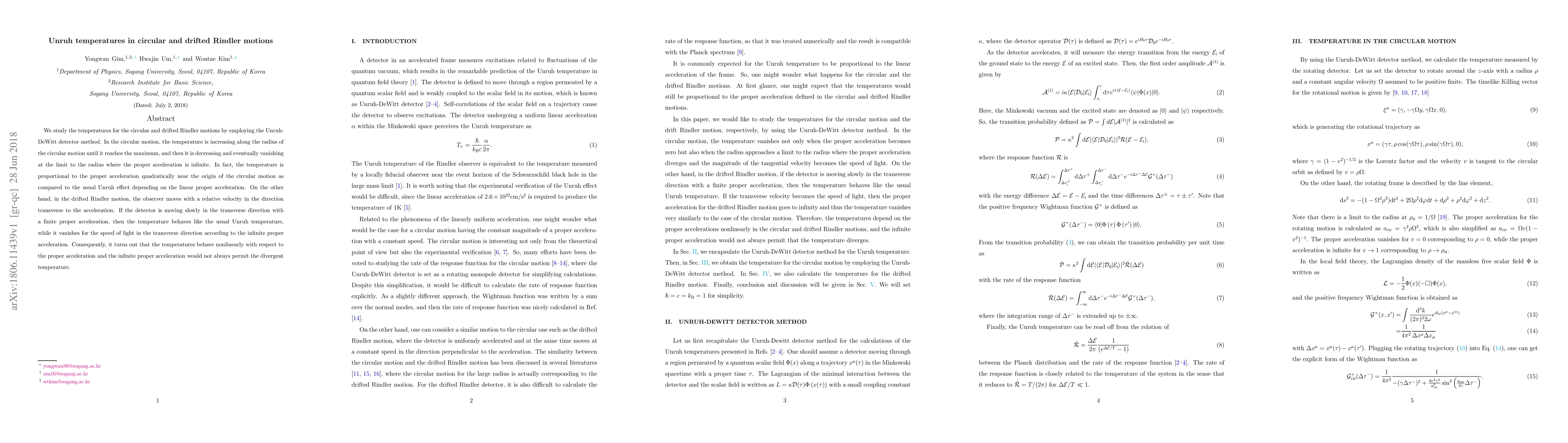 This paper investigates Unruh temperatures in circular and drifted Rindler motions using the Unruh-DeWitt detector method. In circular motion, the temperature increases with radius, peaks, and vanishes at infinite proper acceleration, while in drifted Rindler motion, the temperature behaves like the usual Unruh temperature at low transverse speeds but vanishes at the speed of light.