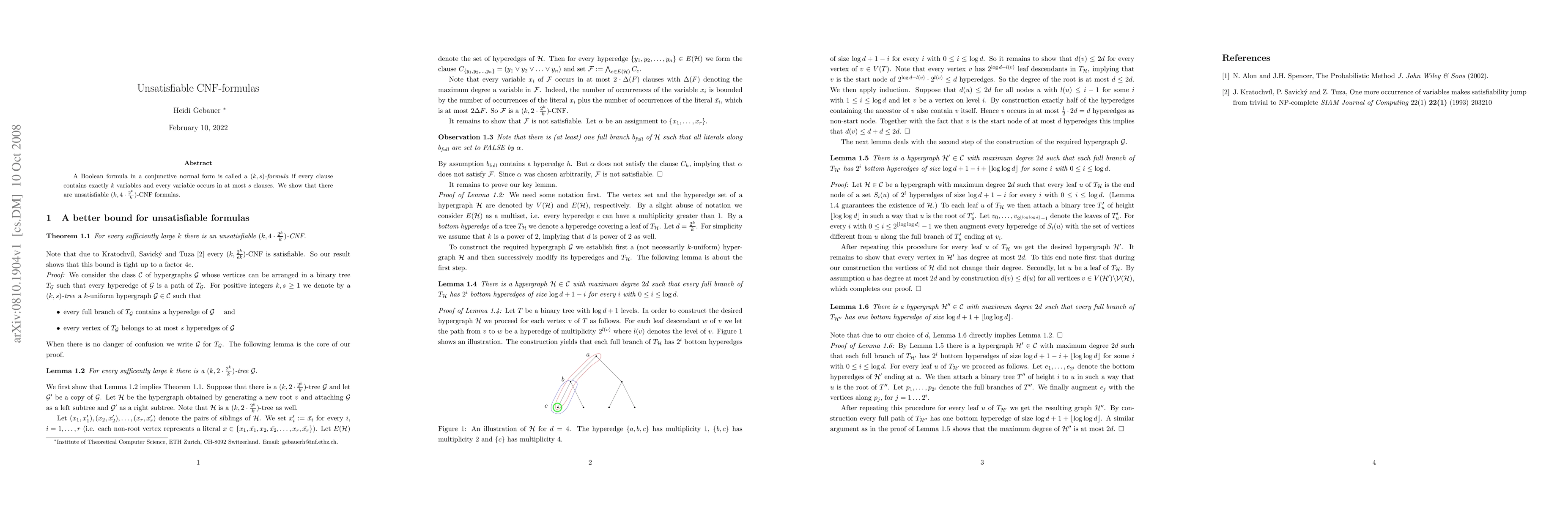 This paper proves the existence of unsatisfiable (k, 4 * (2^k/k))-CNF formulas, demonstrating that there are boolean formulas with specific clause and variable constraints that cannot be satisfied. The focus is on the structural properties leading to such unsolvability.