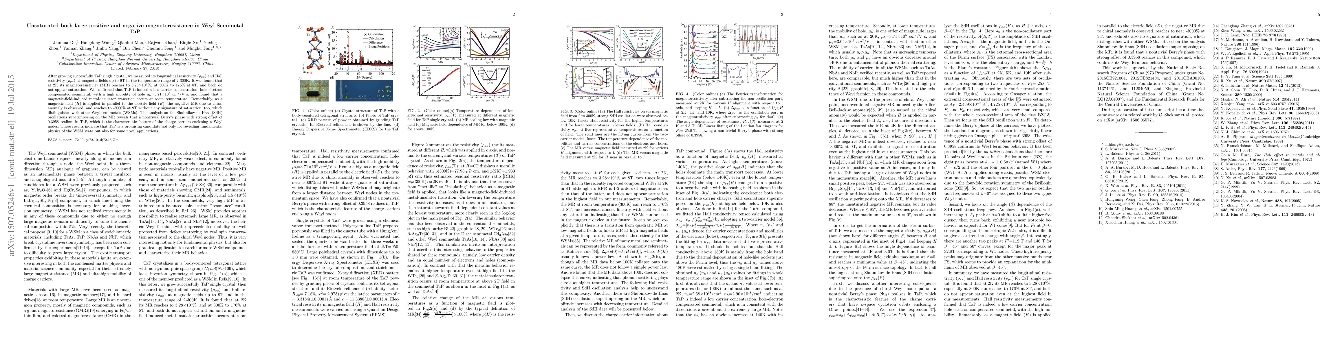 TaP exhibits record-breaking magnetoresistance values up to -3000% at 9T without saturation, showcasing a nontrivial Berry phase with strong offset, making it a promising candidate for fundamental physics studies and novel applications.