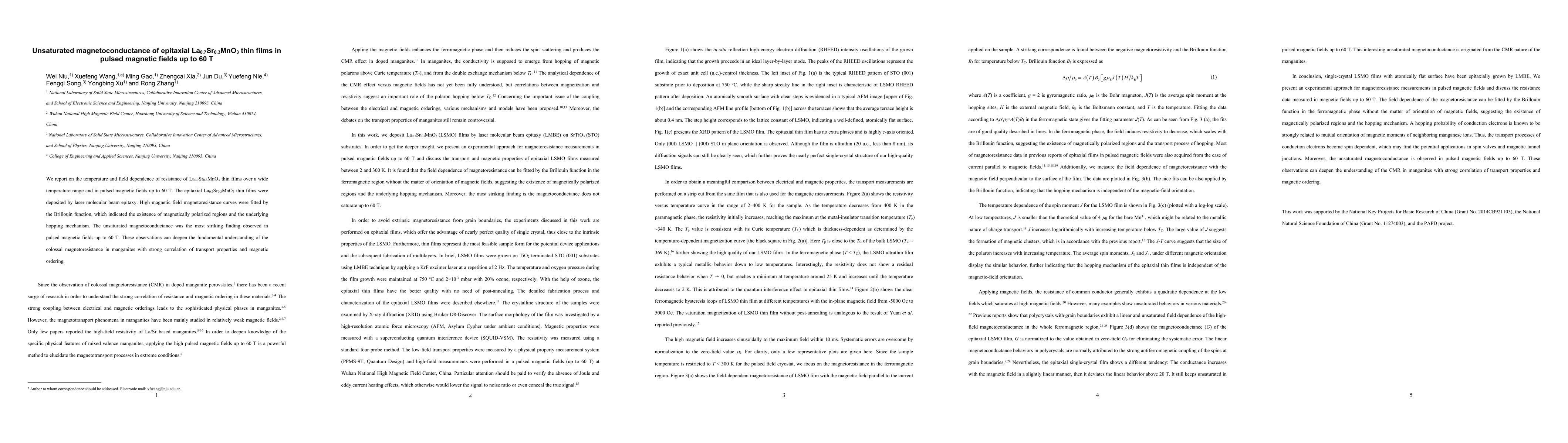 This study investigates the resistance of epitaxial La0.7Sr0.3MnO3 thin films under various temperatures and pulsed magnetic fields up to 60 T, revealing an unsaturated magnetoconductance. The findings suggest a magnetically polarized hopping mechanism and could enhance understanding of the colossal magnetoresistance in manganites.