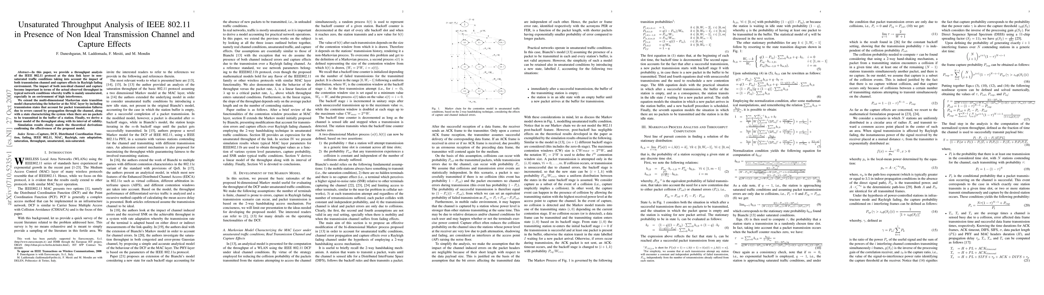 Researchers analyze IEEE 802.11 protocol throughput in unsaturated network conditions with channel and capture effects. Their model confirms the impact of these factors on actual observed throughput.