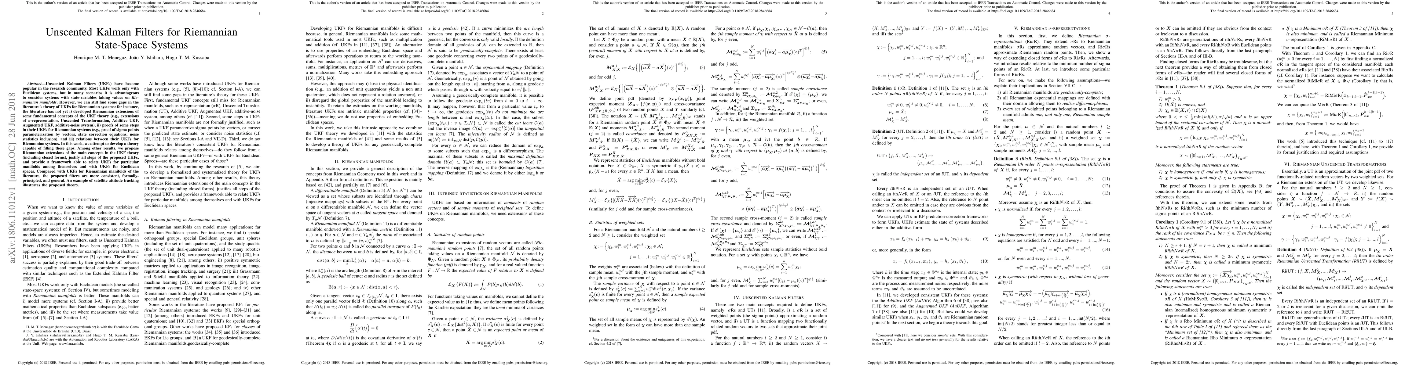Unscented Kalman Filters (UKFs) have become popular in the research community. Most UKFs work only with Euclidean systems, but in many scenarios it is advantageous to consider systems with state-variables taking values on Riemannian manifolds. However, we can still find some gaps in the literature's theory of UKFs for Riemannian systems: for instance, the literature has not yet i) developed Riemannian extensions of some fundamental concepts of the UKF theory (e.g., extensions of $\sigma$-representation, Unscented Transformation, Additive UKF, Augmented UKF, additive-noise system), ii) proofs of some steps in their UKFs for Riemannian systems (e.g., proof of sigma points parameterization by vectors, state correction equations, noise statistics inclusion), and iii) relations between their UKFs for Riemannian systems. In this work, we attempt to develop a theory capable of filling these gaps. Among other results, we propose Riemannian extensions of the main concepts in the UKF theory (including closed forms), justify all steps of the proposed UKFs, and provide a framework able to relate UKFs for particular manifolds among themselves and with UKFs for Euclidean spaces. Compared with UKFs for Riemannian manifolds of the literature, the proposed filters are more consistent, formally-principled, and general. An example of satellite attitude tracking illustrates the proposed theory.