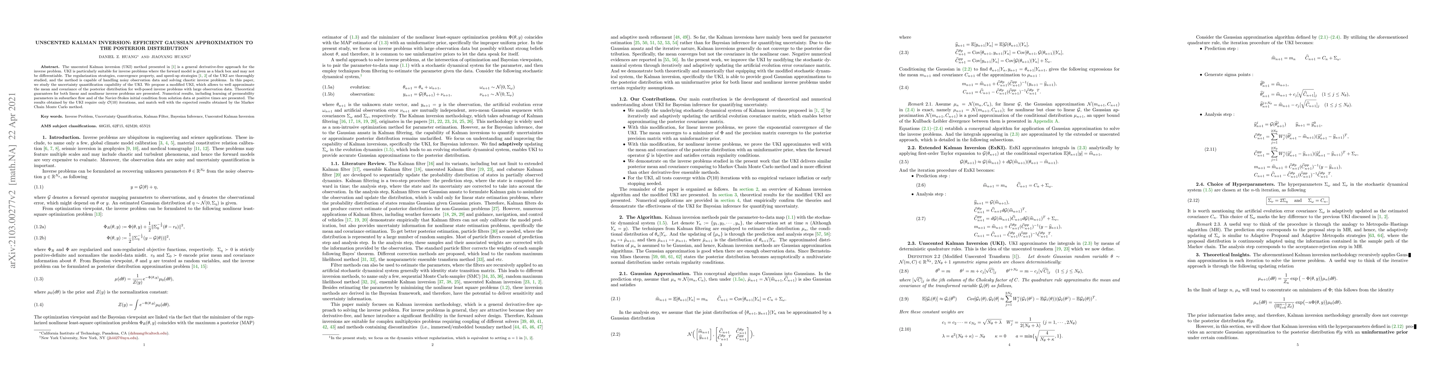 Researchers developed an improved method for solving inverse problems called Unscented Kalman Inversion (UKI), which can efficiently approximate the posterior distribution with high accuracy and speed, rivaling more complex methods like Markov Chain Monte Carlo.