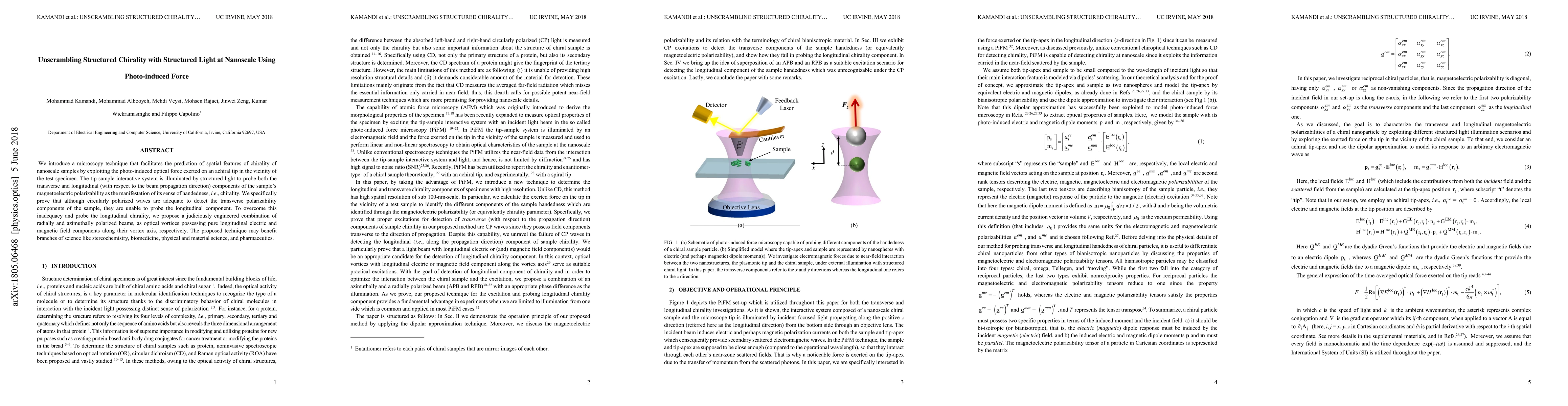 Researchers developed a microscopy technique using structured light to measure chirality at the nanoscale, enabling detection of both transverse and longitudinal components of magnetoelectric polarizability.