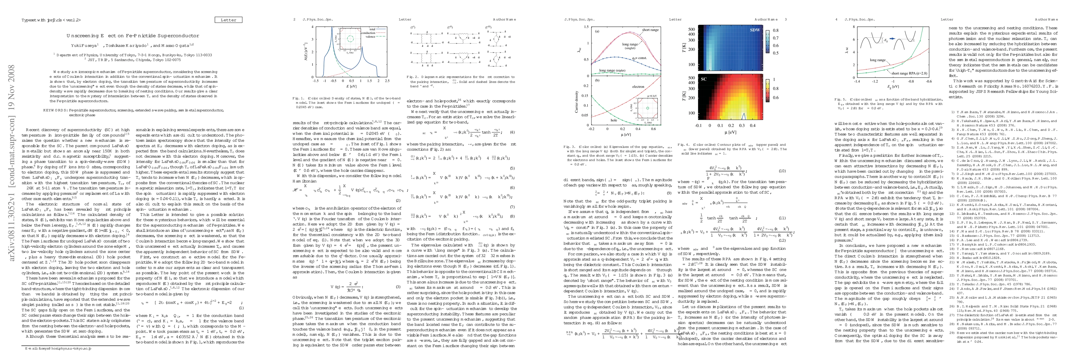 We study a microscopic mechanism of Fe-pnictide superconductor, considering the screening effects of Coulomb interaction in addition to the conventional spin-fluctuation mechanism. It is shown that, by electron doping, the transition temperature of superconductivity increases due to the "unscreening" effect even though the density of states decrease, while that of spin-density wave rapidly decreases due to breaking of nesting conditions. Our results give a clear interpretation to the mystery of interrelation between T_c and the density of states observed in the Fe-pnictide superconductors.