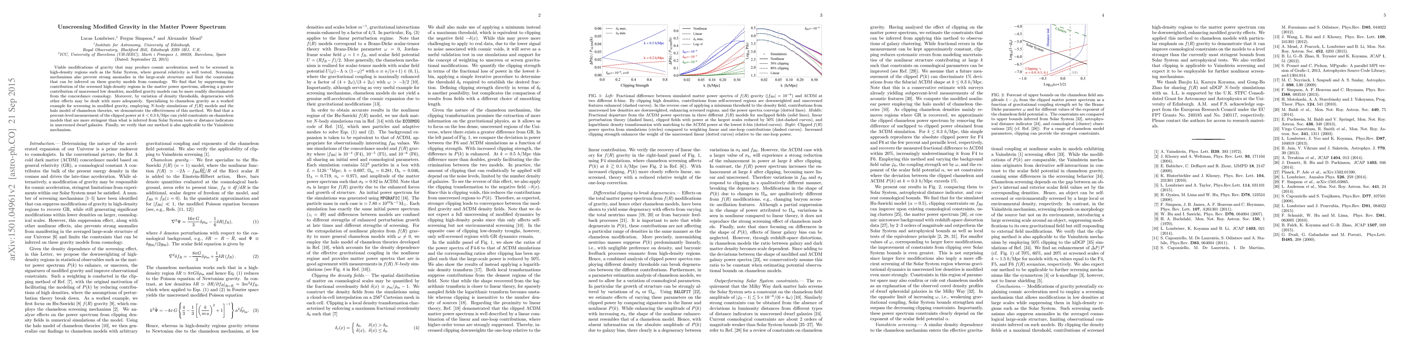 Viable modifications of gravity that may produce cosmic acceleration need to be screened in high-density regions such as the Solar System, where general relativity is well tested. Screening mechanisms also prevent strong anomalies in the large-scale structure and limit the constraints that can be inferred on these gravity models from cosmology. We find that by suppressing the contribution of the screened high-density regions in the matter power spectrum, allowing a greater contribution of unscreened low densities, modified gravity models can be more readily discriminated from the concordance cosmology. Moreover, by variation of density thresholds, degeneracies with other effects may be dealt with more adequately. Specializing to chameleon gravity as a worked example for screening in modified gravity, employing N-body simulations of f(R) models and the halo model of chameleon theories, we demonstrate the effectiveness of this method. We find that a percent-level measurement of the clipped power at k < 0.3 h/Mpc can yield constraints on chameleon models that are more stringent than what is inferred from Solar System tests or distance indicators in unscreened dwarf galaxies. Finally, we verify that our method is also applicable to the Vainshtein mechanism.