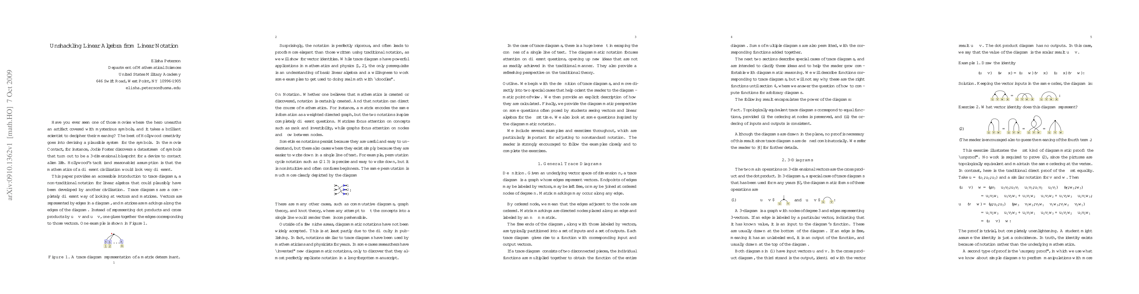 This paper introduces trace diagrams, a novel notation for linear algebra, aimed at advanced undergraduates. This method represents vectors as edges and matrices as markings on these edges, offering more elegant proofs compared to traditional linear algebra notation. The paper includes definitions, examples, and exercises to help students transition to this new perspective.