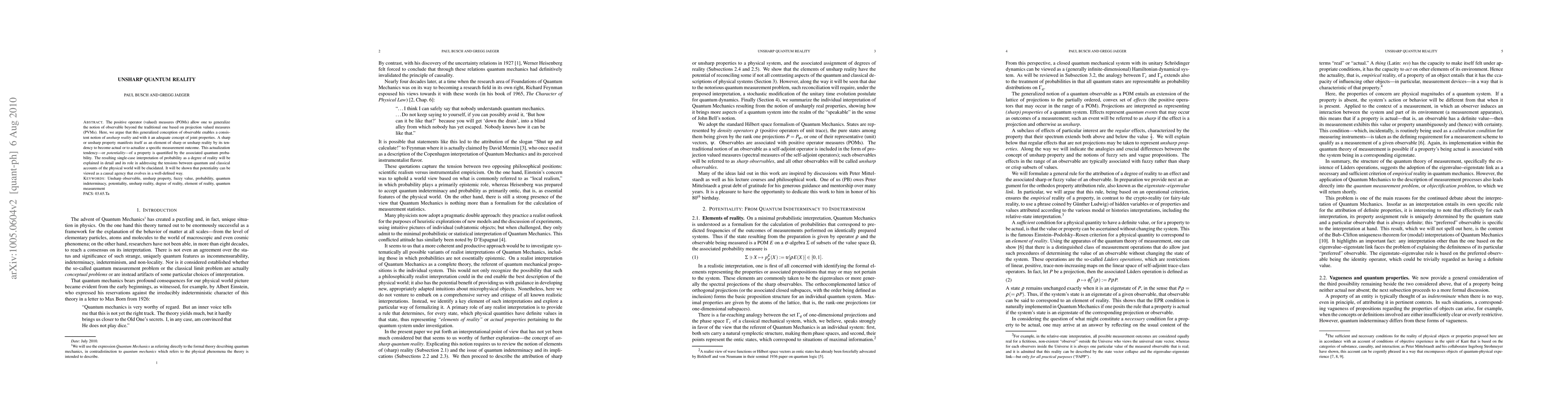 This paper proposes a generalized notion of observable using positive operator-valued measures (POMs) to introduce unsharp reality and joint properties in quantum mechanics. It interprets quantum probability as a degree of reality, addressing the tensions between quantum and classical physics by viewing potentiality as a causal agency.