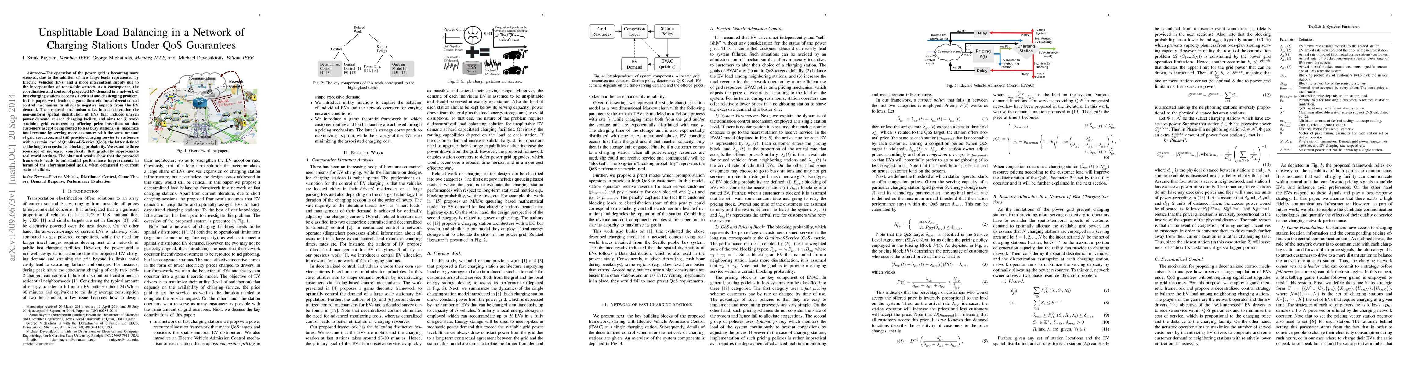 This paper proposes a decentralized control mechanism using game theory to manage uneven power demand at EV charging stations, offering price incentives to balance loads, maximize revenue, and maintain a certain Quality-of-Service (QoS). Results indicate significant performance improvements over current methods in various simulated scenarios.