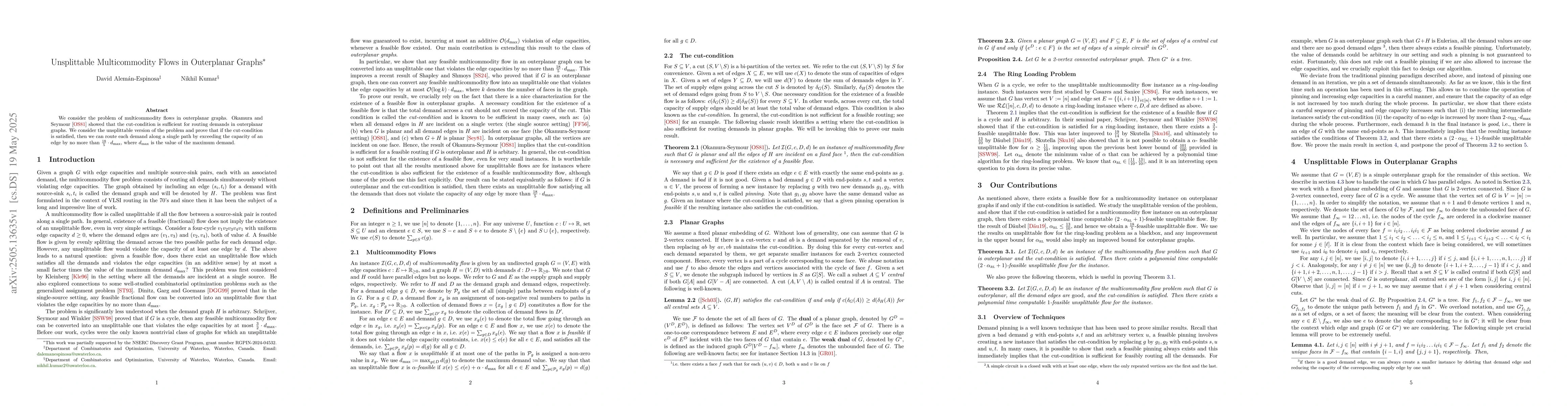 The research builds upon Okamura and Seymour's work on routing demands in outerplanar graphs using the cut-condition, then explores the unsplittable multicommodity flow problem within this context.