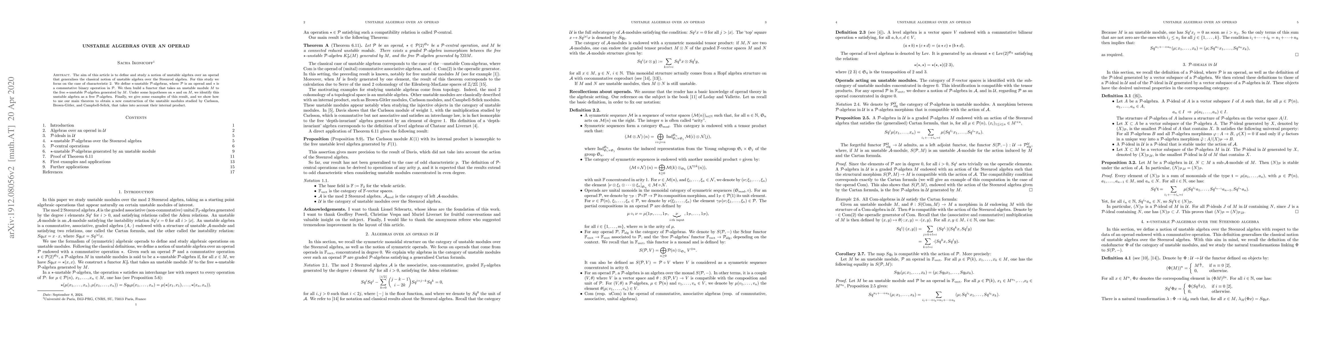 This paper defines and explores $\star$-unstable algebras over an operad, generalizing the concept of unstable algebras over the Steenrod algebra, with a focus on characteristic 2. It constructs a functor that maps unstable modules to free $\star$-unstable $\mathcal P$-algebras, identifying these under certain conditions as free $\mathcal P$-algebras, and applies the results to reinterpret previous work on unstable modules.