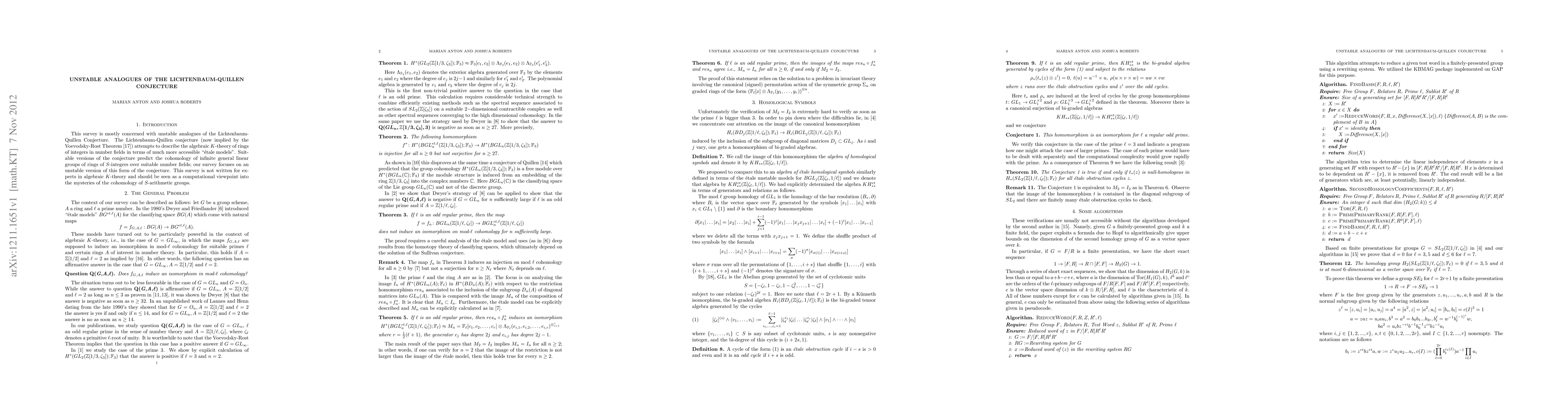 This survey is mostly concerned with unstable analogues of the Lichtenbaum-Quillen Conjecture. The Lichtenbaum-Quillen Conjecture (now implied by the Voevodsky-Rost Theorem) attempts to describe the algebraic K-theory of rings of integers in number fields in terms of much more accessible "etale models". Suitable versions of the conjecture predict the cohomology of infinite general linear groups of rings of S-integers over suitable number fields; our survey focuses on an unstable version of this form of the conjecture.