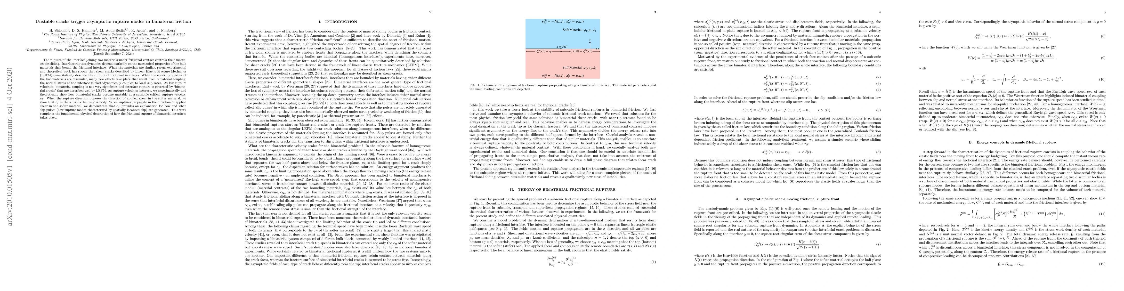 The rupture of the interface joining two materials under frictional contact controls their macroscopic sliding. Interface rupture dynamics depend markedly on the mechanical properties of the bulk materials that bound the frictional interface. When the materials are similar, recent experimental and theoretical work has shown that shear cracks described by Linear Elastic Fracture Mechanics (LEFM) quantitatively describe the rupture of frictional interfaces. When the elastic properties of the two materials are dissimilar, many new effects take place that result from bimaterial coupling: the normal stress at the interface is elastodynamically coupled to local slip rates. At low rupture velocities, bimaterial coupling is not very significant and interface rupture is governed by `bimaterial cracks' that are described well by LEFM. As rupture velocities increase, we experimentally and theoretically show how bimaterial cracks become unstable at a subsonic critical rupture velocity, $c_T$. When the rupture direction opposes the direction of applied shear in the softer material, we show that $c_T$ is the subsonic limiting velocity. When ruptures propagate in the direction of applied shear in the softer material, we demonstrate that $c_T$ provides an explanation for how and when slip pulses (new rupture modes characterized by spatially localized slip) are generated. This work completes the fundamental physical description of how the frictional rupture of bimaterial interfaces takes place.