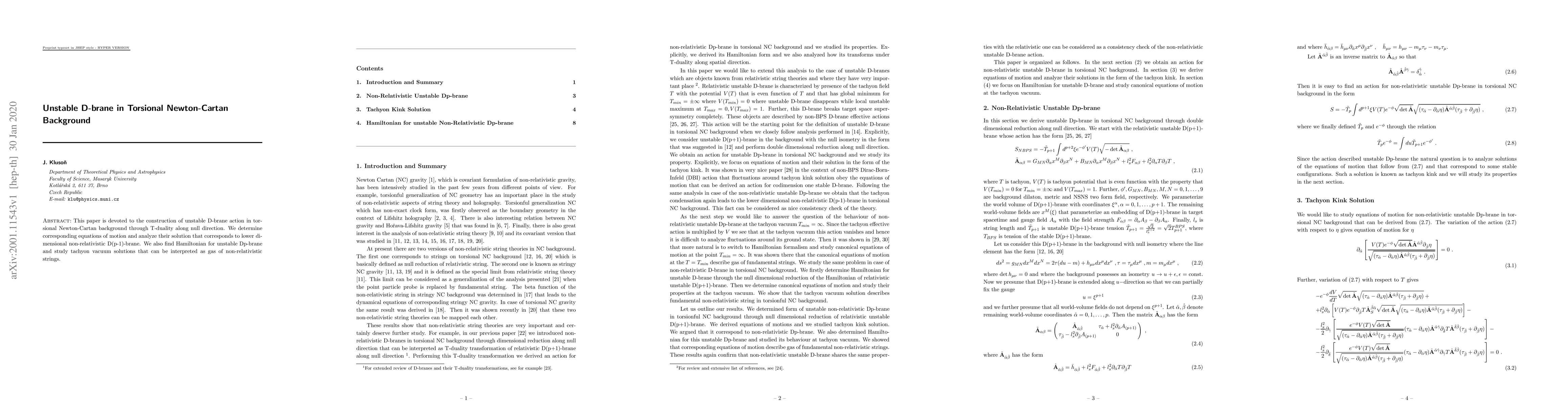 This paper constructs the action for an unstable D-brane in a torsional Newton-Cartan background via T-duality along a null direction, deriving the corresponding equations of motion and analyzing solutions that describe lower-dimensional non-relativistic D(p-1)-branes, along with studying tachyon vacuum solutions as non-relativistic string gases.
