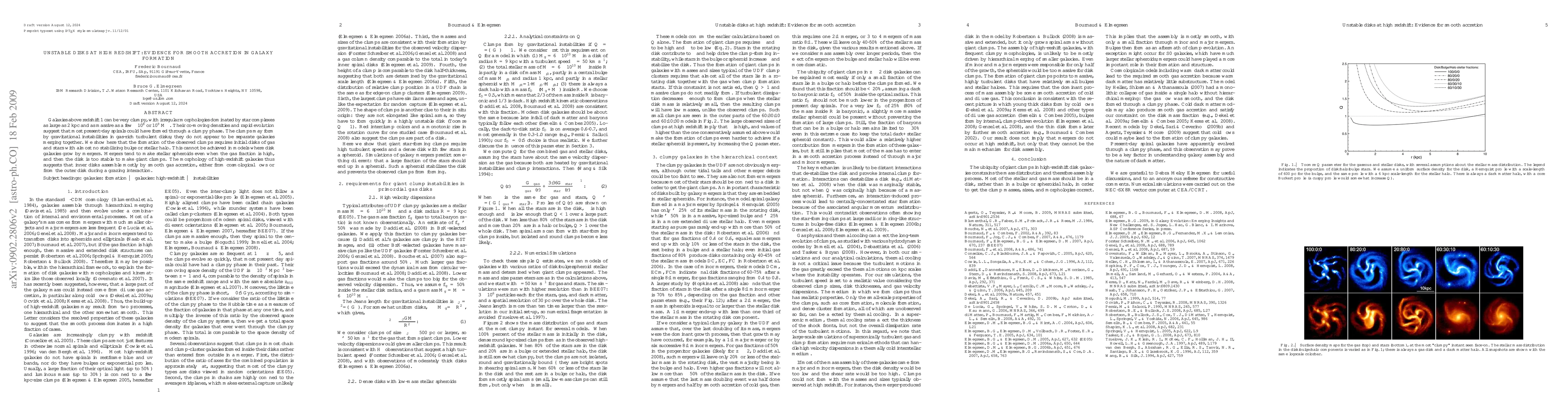 This paper argues that high-redshift galaxies exhibit unstable, clumpy disks that likely formed through smooth accretion, rather than mergers, due to the lack of stabilizing bulges or stellar halos. The observed clumpy structures suggest that these galaxies assembled primarily through gas accretion processes.