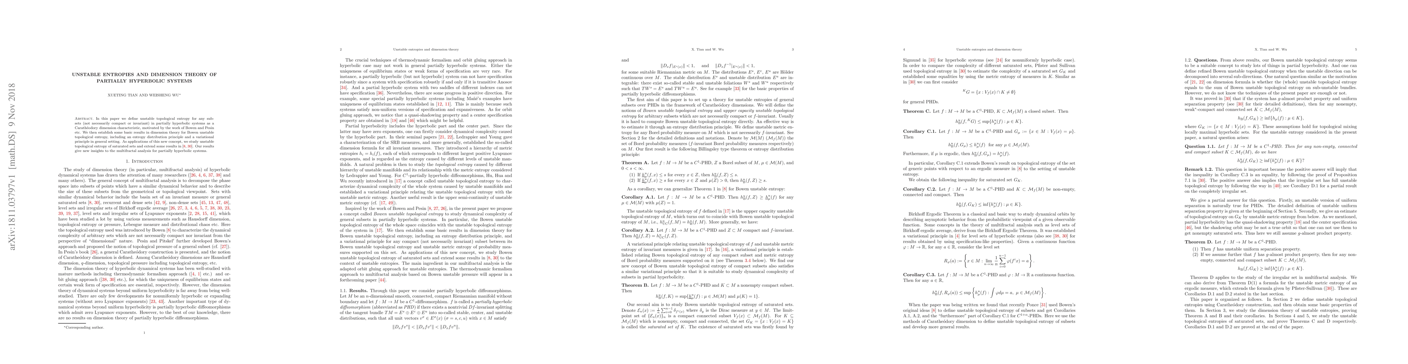 This paper introduces unstable topological entropy for subsets in partially hyperbolic systems as a Carathéodory dimension characteristic, establishing foundational dimension theory results and applying these to saturated sets. The new concept provides fresh insights into the multifractal analysis for such systems.