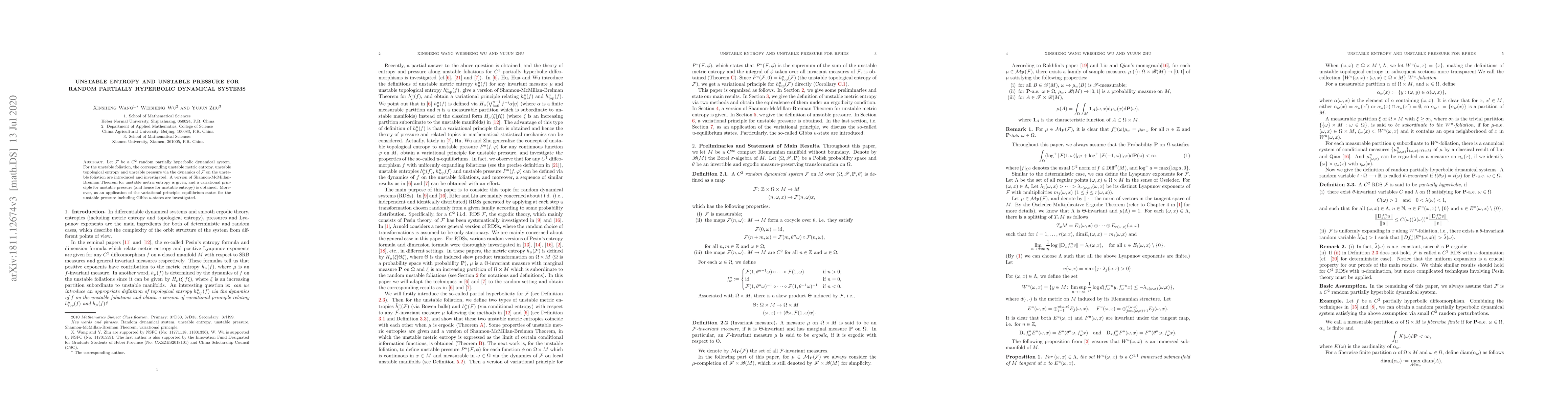 Let $\mathcal{F}$ be a $C^2$ random partially hyperbolic dynamical system. For the unstable foliation, the corresponding unstable metric entropy, unstable topological entropy and unstable pressure via the dynamics of $\mathcal{F}$ on the unstable foliation are introduced and investigated. A version of Shannon-McMillan-Breiman Theorem for unstable metric entropy is given, and a variational principle for unstable pressure (and hence for unstable entropy) is obtained. Moreover, as an application of the variational principle, equilibrium states for the unstable pressure including Gibbs $u$-states are investigated.