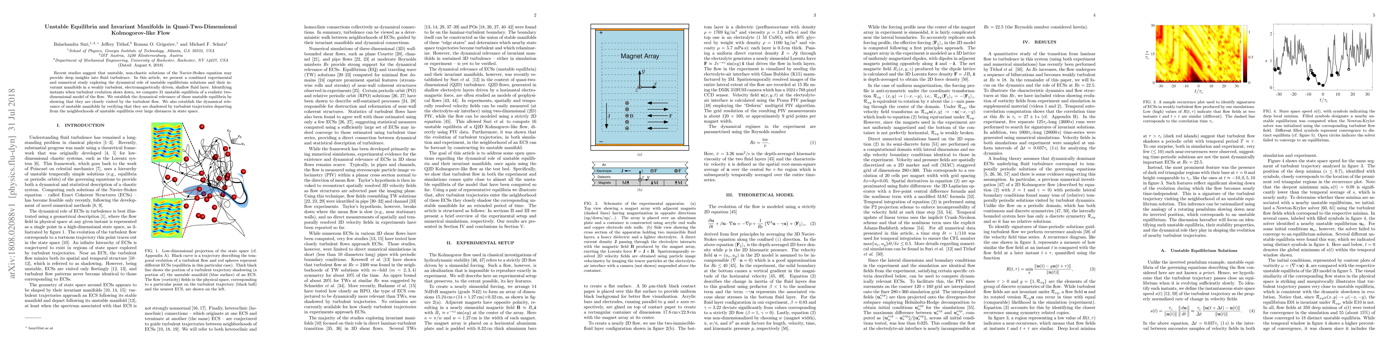 Recent studies suggest that unstable, non-chaotic solutions of the Navier-Stokes equation may provide deep insights into fluid turbulence. In this article, we present a combined experimental and numerical study exploring the dynamical role of unstable equilibrium solutions and their invariant manifolds in a weakly turbulent, electromagnetically driven, shallow fluid layer. Identifying instants when turbulent evolution slows down, we compute 31 unstable equilibria of a realistic two-dimensional model of the flow. We establish the dynamical relevance of these unstable equilibria by showing that they are closely visited by the turbulent flow. We also establish the dynamical relevance of unstable manifolds by verifying that they are shadowed by turbulent trajectories departing from the neighborhoods of unstable equilibria over large distances in state space.